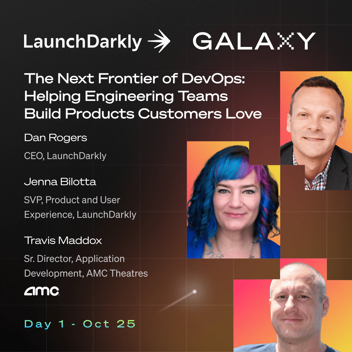 At Galaxy23, you’ll learn how “ship happens” for the world’s biggest brands. Theater giant AMC, retail solutions leader SPS Commerce, and other top LaunchDarkly customers reveal the secrets of shipping software at massive scale.