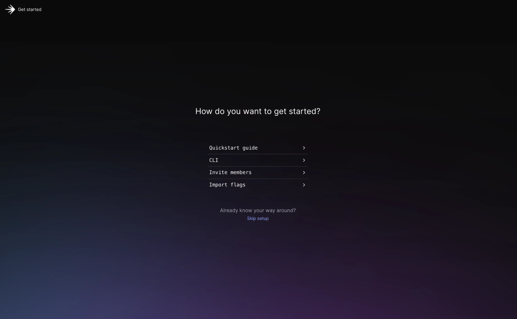 Head to LaunchDarkly in your web browser and create an account or log in if you already have one. If you're new, click ‘Skip setup’ after verifying your email.