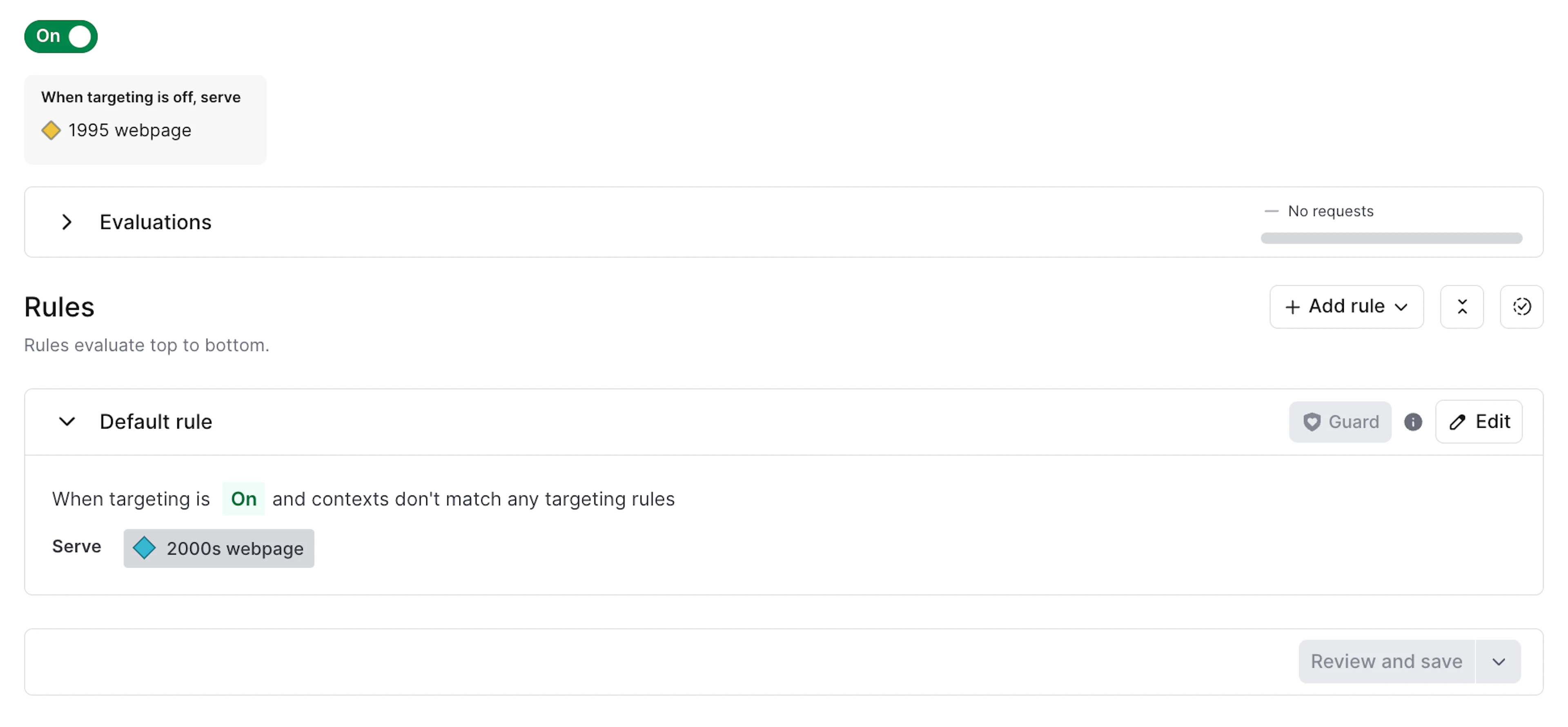 Go to your LaunchDarkly dashboard and toggle the ‘style-update' flag on. Return to the website and see how its look and feel have instantly been upgraded to the early 2000s, without having to redeploy.