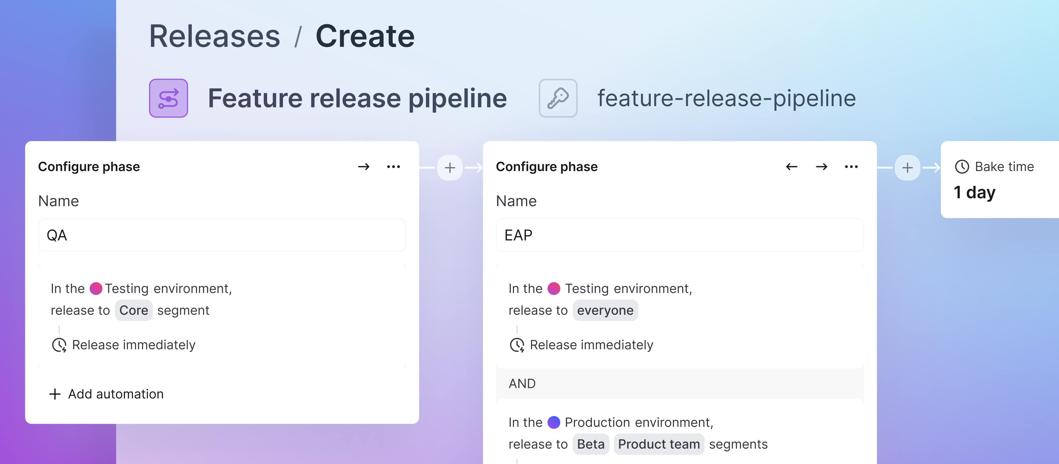 - Define audiences for each release phase: Specify an audience for each step in a release pipeline, ensuring flags only roll out to intended users (e.g., internal testers only).