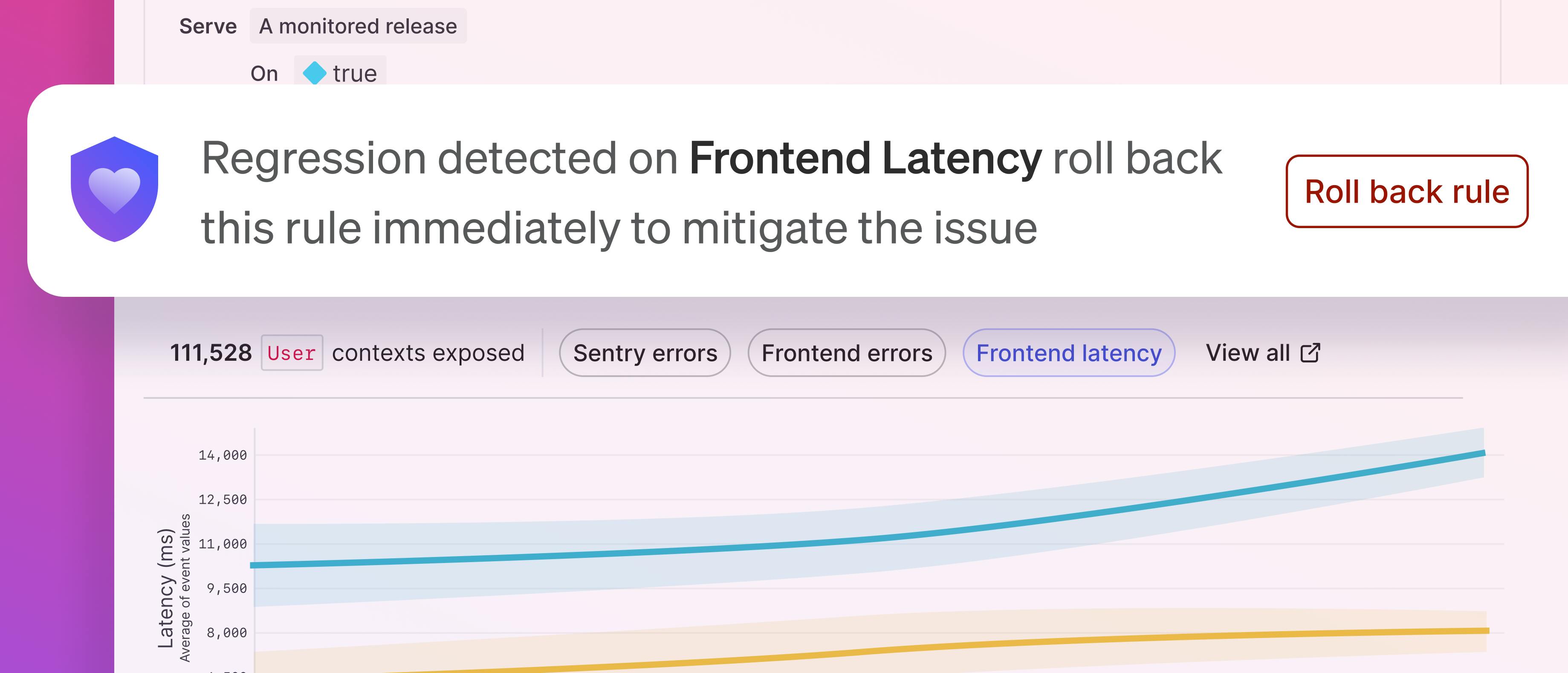 Releasing software involves a delicate balance between speed and risk mitigation. Teams often must choose between speed and safety. With LaunchDarkly's Release Guardian, you no longer have to make this trade-off. Release Guardian enables you to monitor the impact of your releases in real-time, ensuring swift issue detection and mitigation.