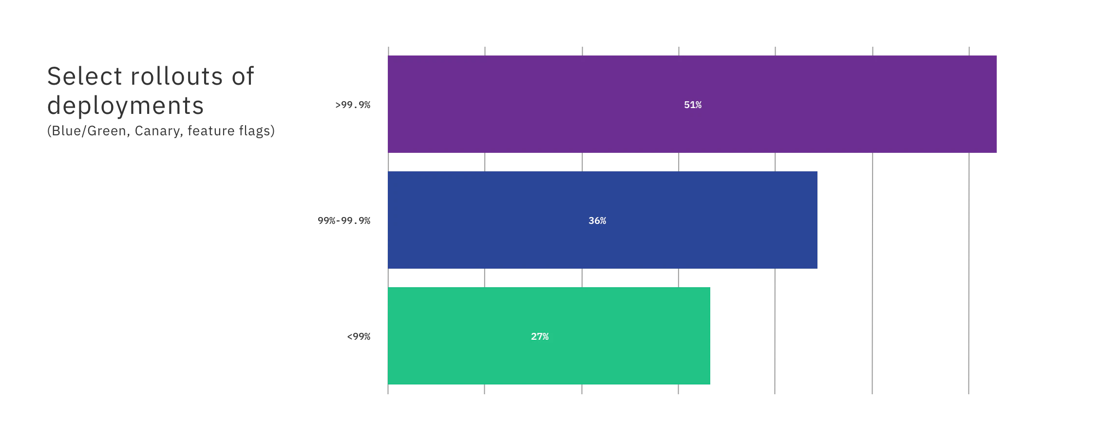 Percentage of companies using blue/green deployment, canary launches, or feature flags.