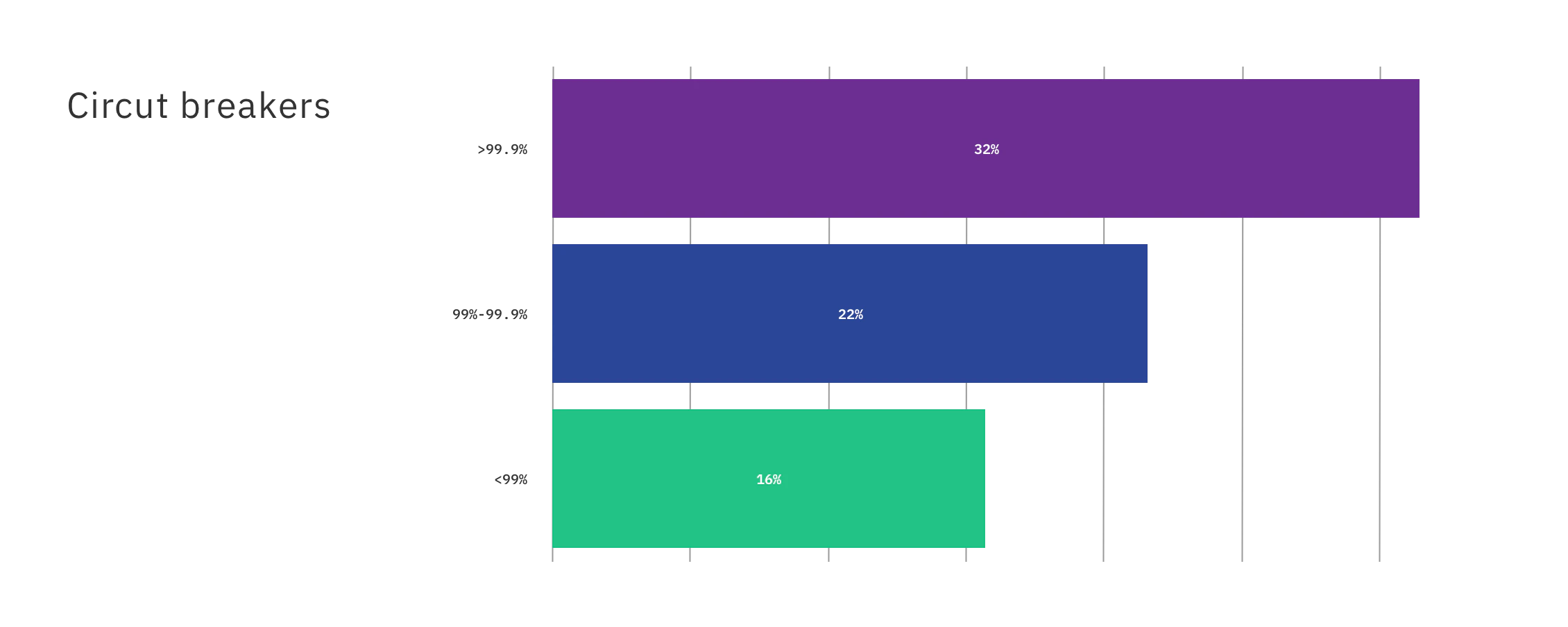 In fact, 32% of those respondents that reported 99.99% availability also take advantage of circuit breakers, and the ability to quickly disable a feature if problems occur after a code deploy.