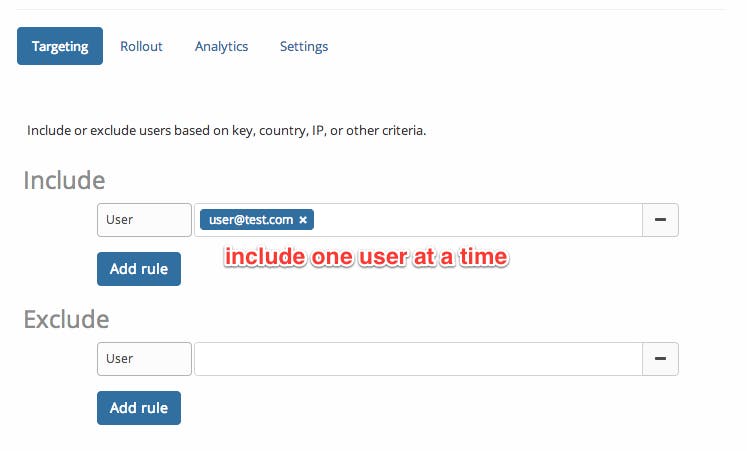 Then, to put an individual user into maintenance mode, just add them to the include list on the ‘targeting’ tab: