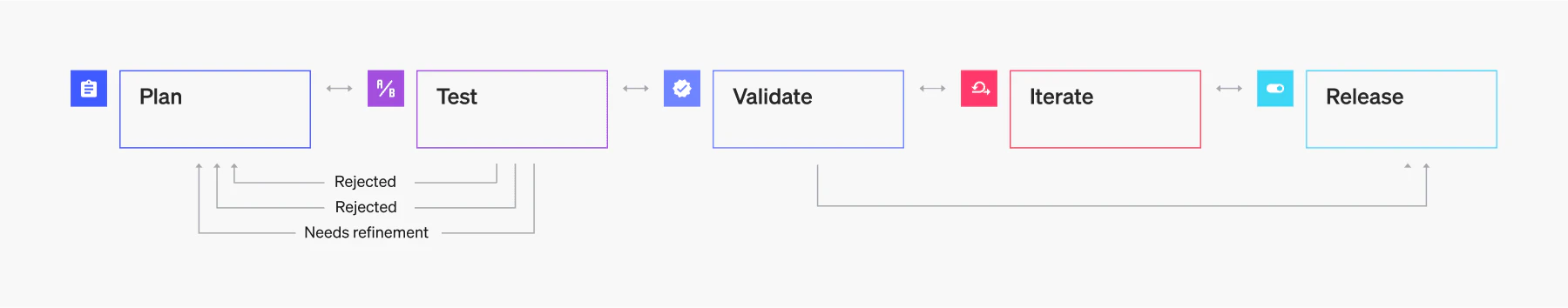 Monitor the success criteria defined as part of the planning stage to decide whether the tested feature should be rolled out to a wider audience or whether it needs further refinement; at this point, you return to the planning stage.