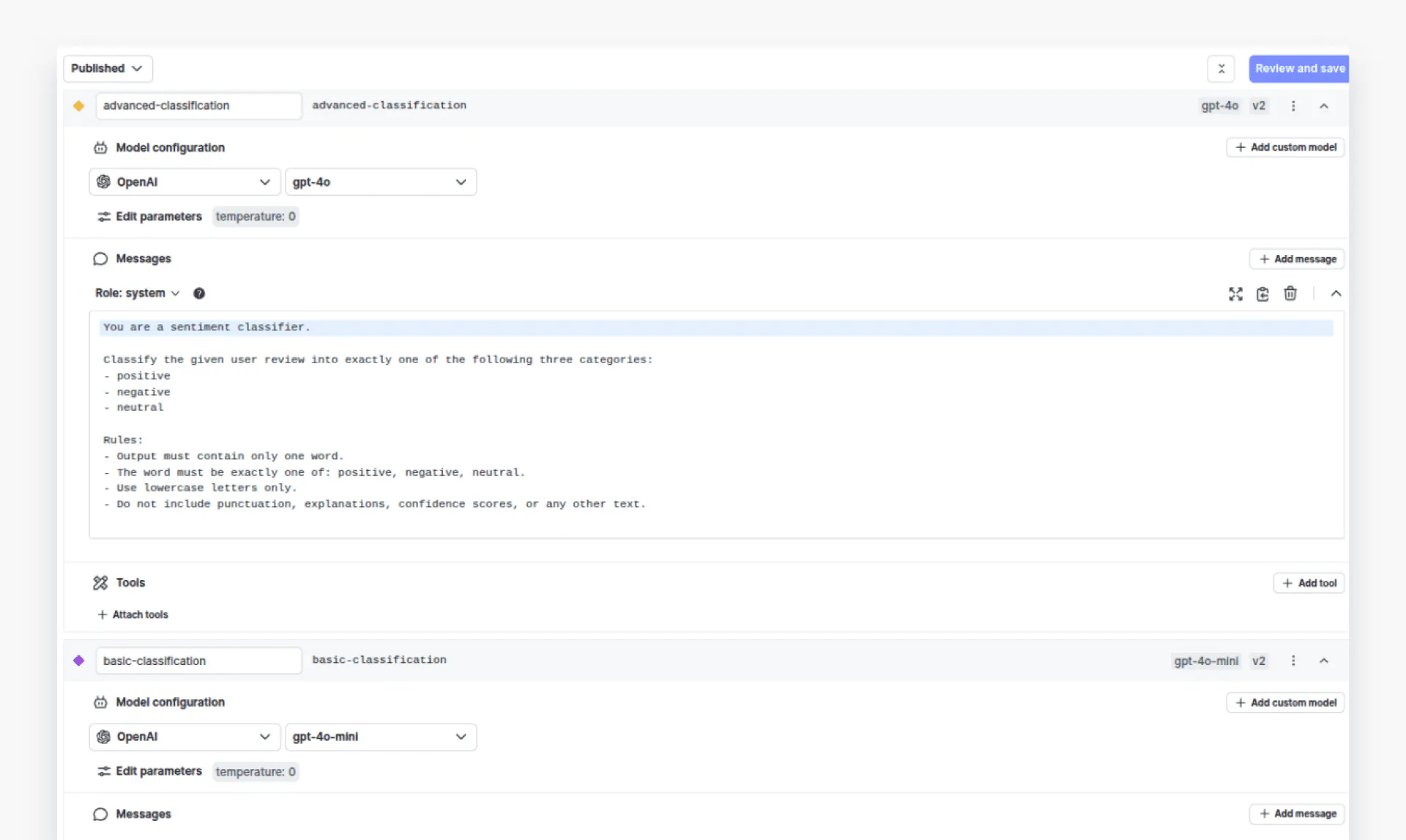 Let’s test both configurations. We will try to predict the sentiment of a customer’s review using both basic and premium configurations.