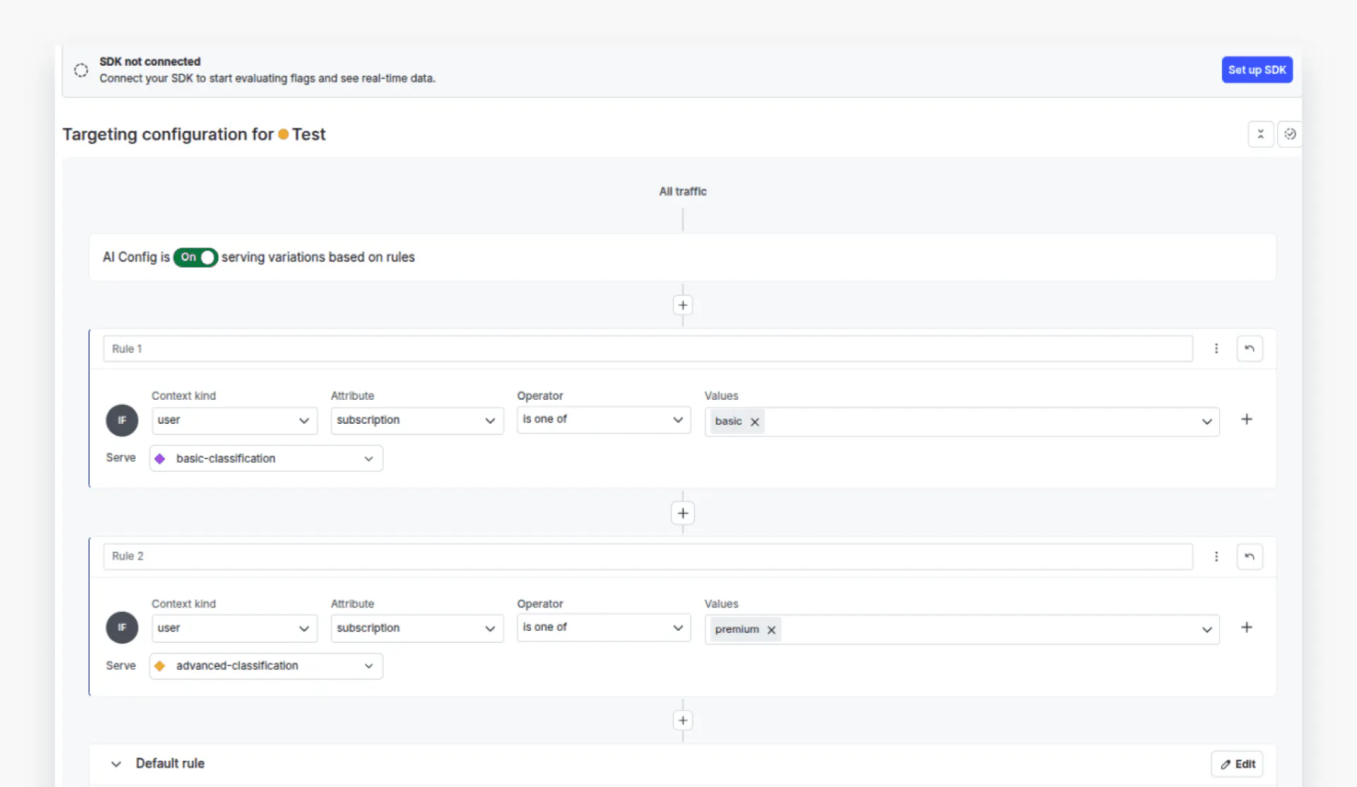 Let’s first test the `advanced-classification` variation using the premium user configuration.