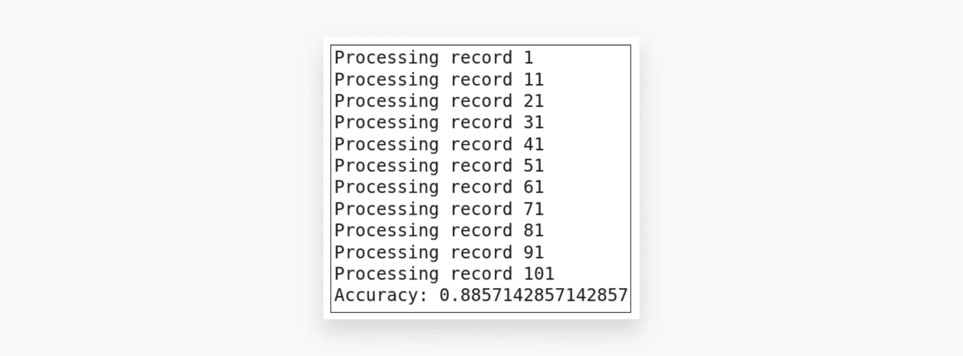 print(f"Processing record {idx + 1}")