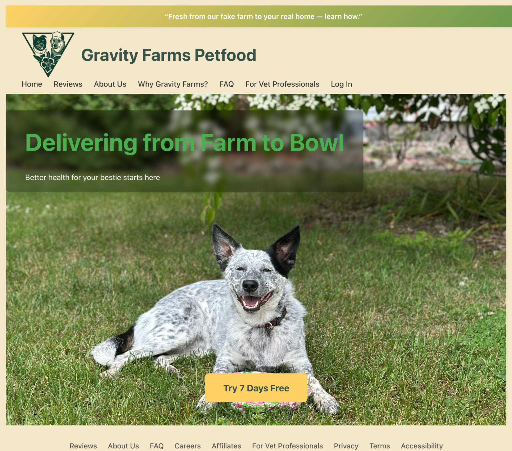 Introducing Gravity Farms Petfood, my fake delivery pet food service