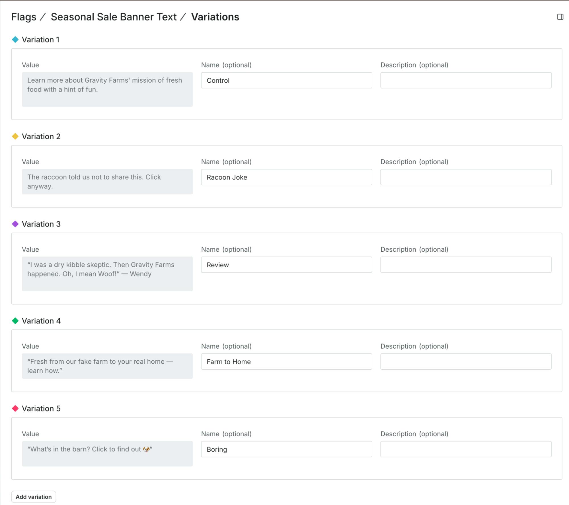 Now that I’ve got this set up, I can add and use multiple variations without further deployment.