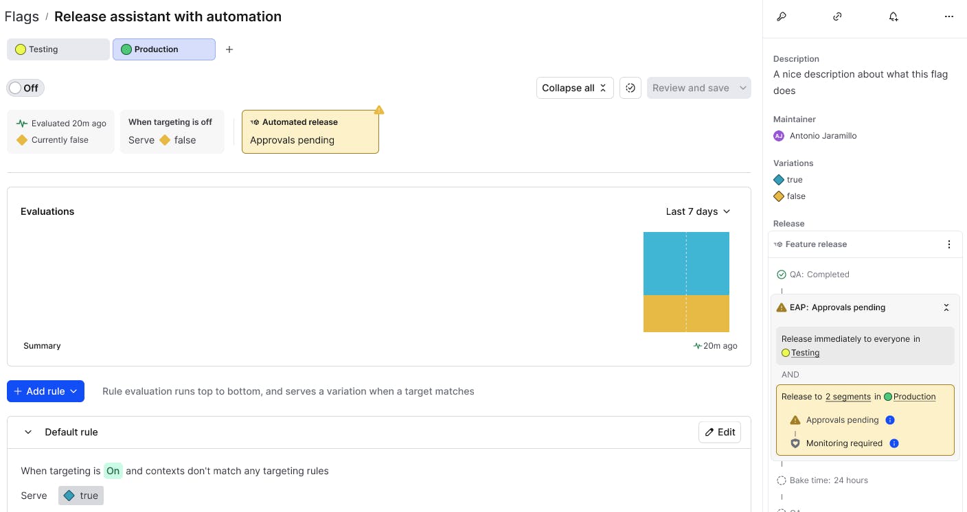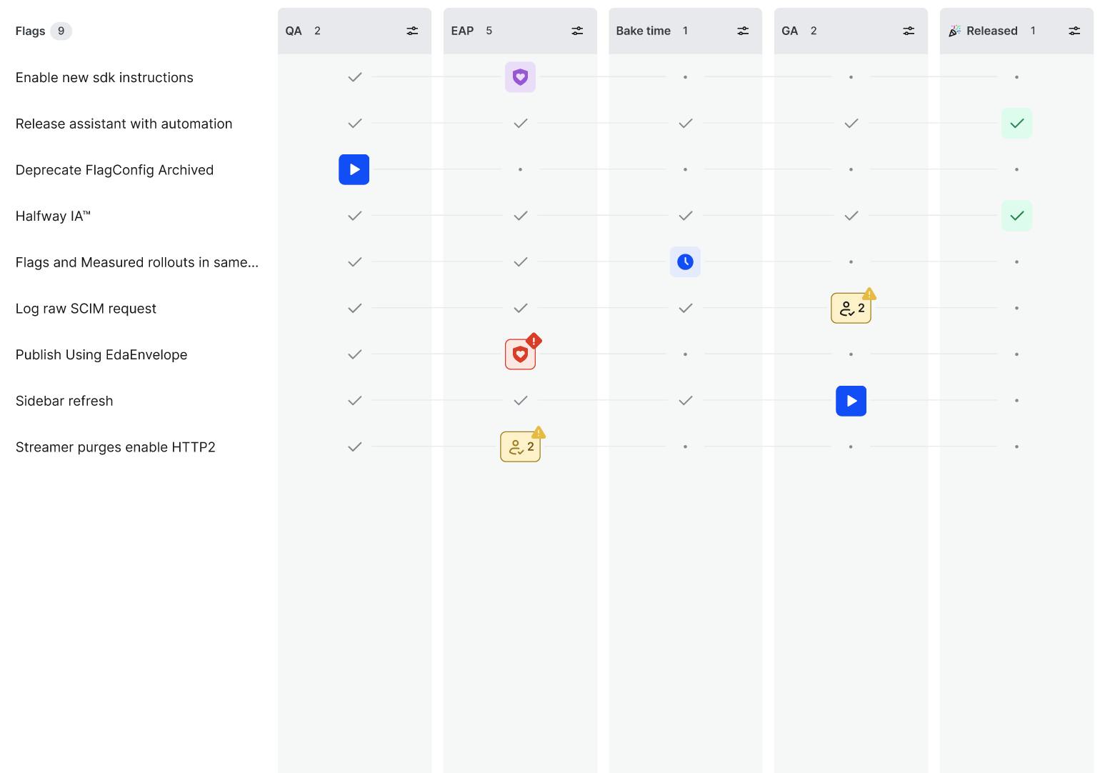 In October 2023, we introduced Release Assistant to help engineering leaders define their team’s best practices as an enforceable workflow (in the form of a release pipeline) applied to every single flag and release.