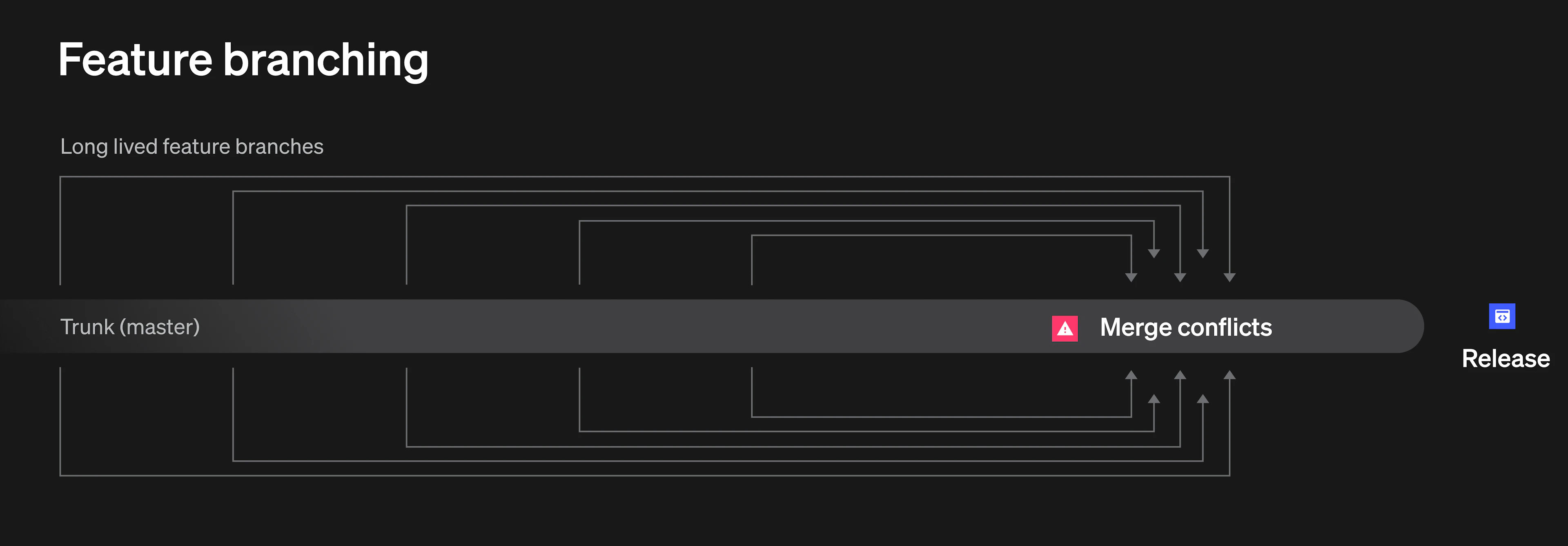 Since you are reading this article, it's probably safe to assume that you've already begun your journey. Still, it's worth noting that in many (if not most) cases, the decision to adopt feature flags comes from the engineering team. This is typically because the current branching strategy has become unmanageable. There are too many branches, too many environments and the process of merging these into main has become difficult and error prone.
