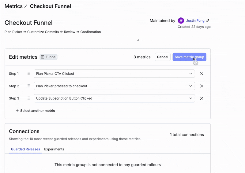 We replaced legacy drag-and-drop components on the Metrics Group page with modern LaunchPad UI components and React hooks, aligning it with the rest of the product. This makes the page easier to use, especially when you’re working with Guardrail Metrics—a recently introduced feature that helps teams track negative outcomes like error rates, latency, or churn.