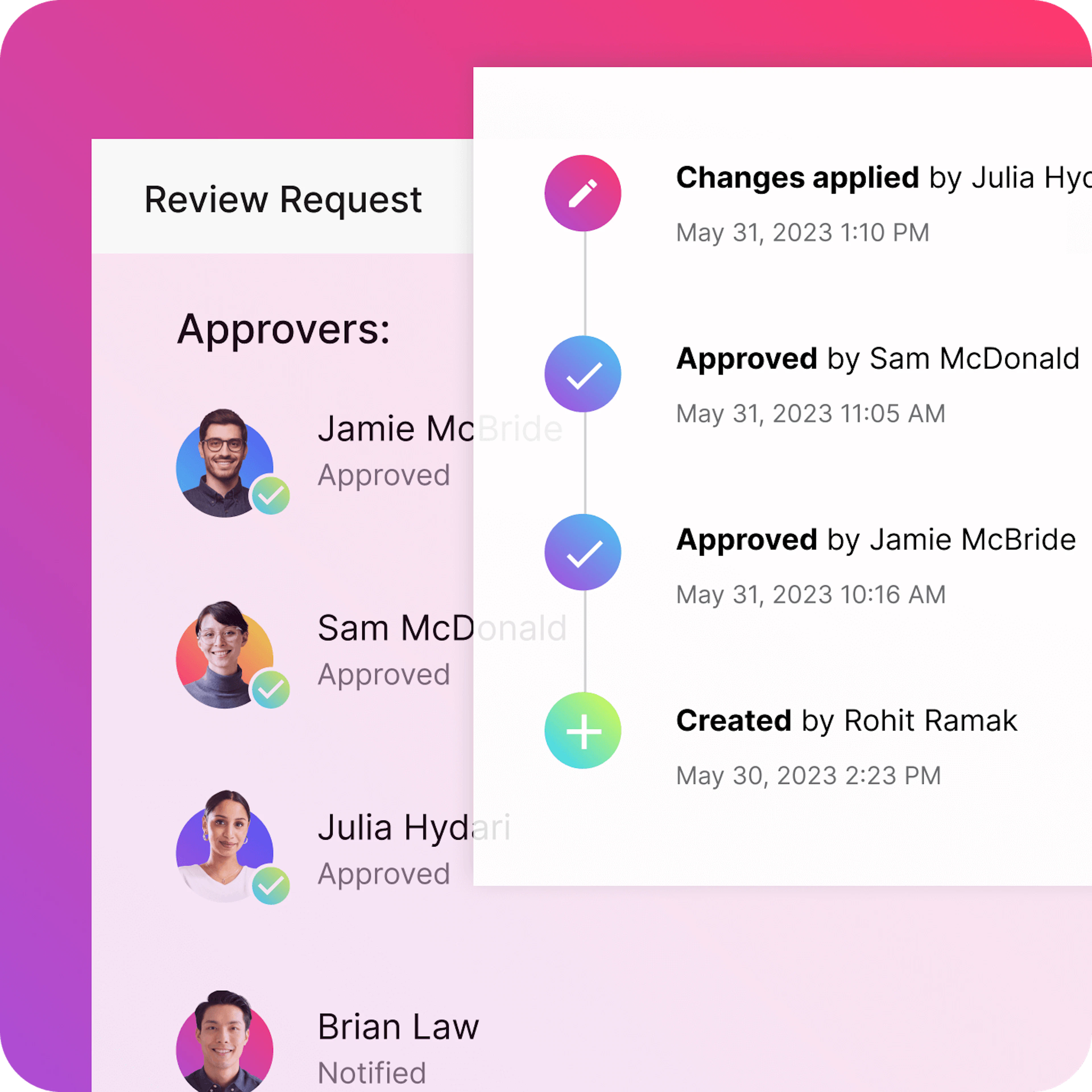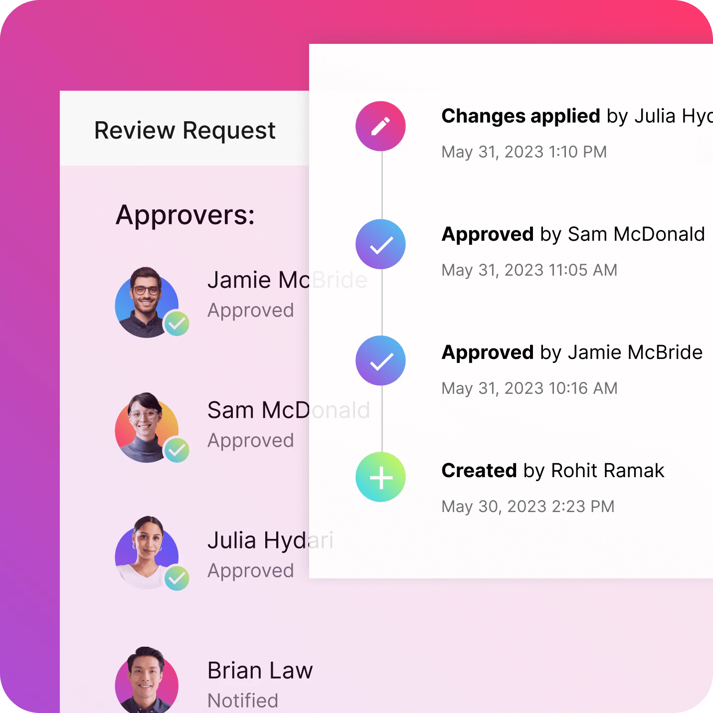 In line with governance standards, issue software change approval requests that automatically get assigned to individuals or teams.