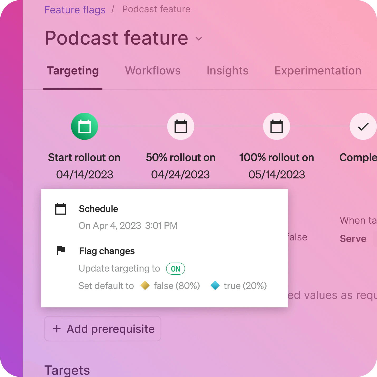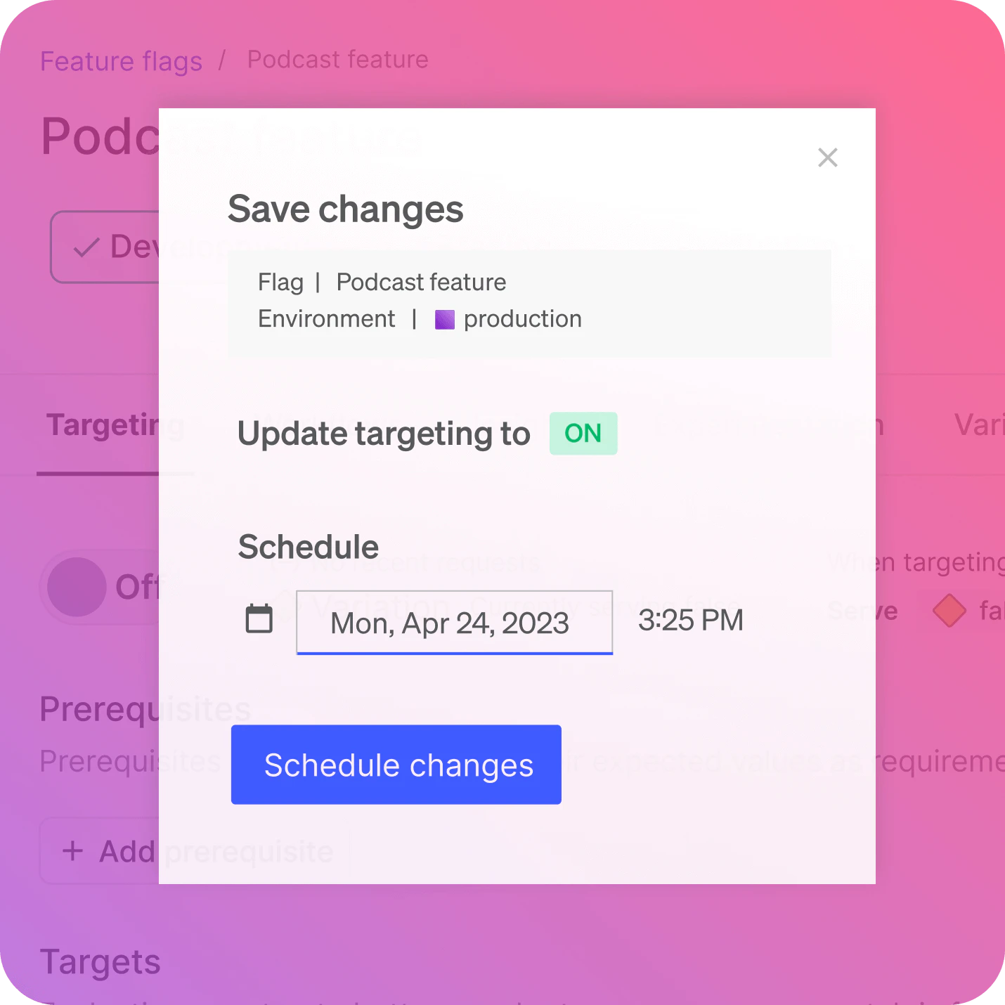 Combine scheduling, approvals, and flag triggers to create templated release workflows. Progressively roll out changes to exactly whom you want.