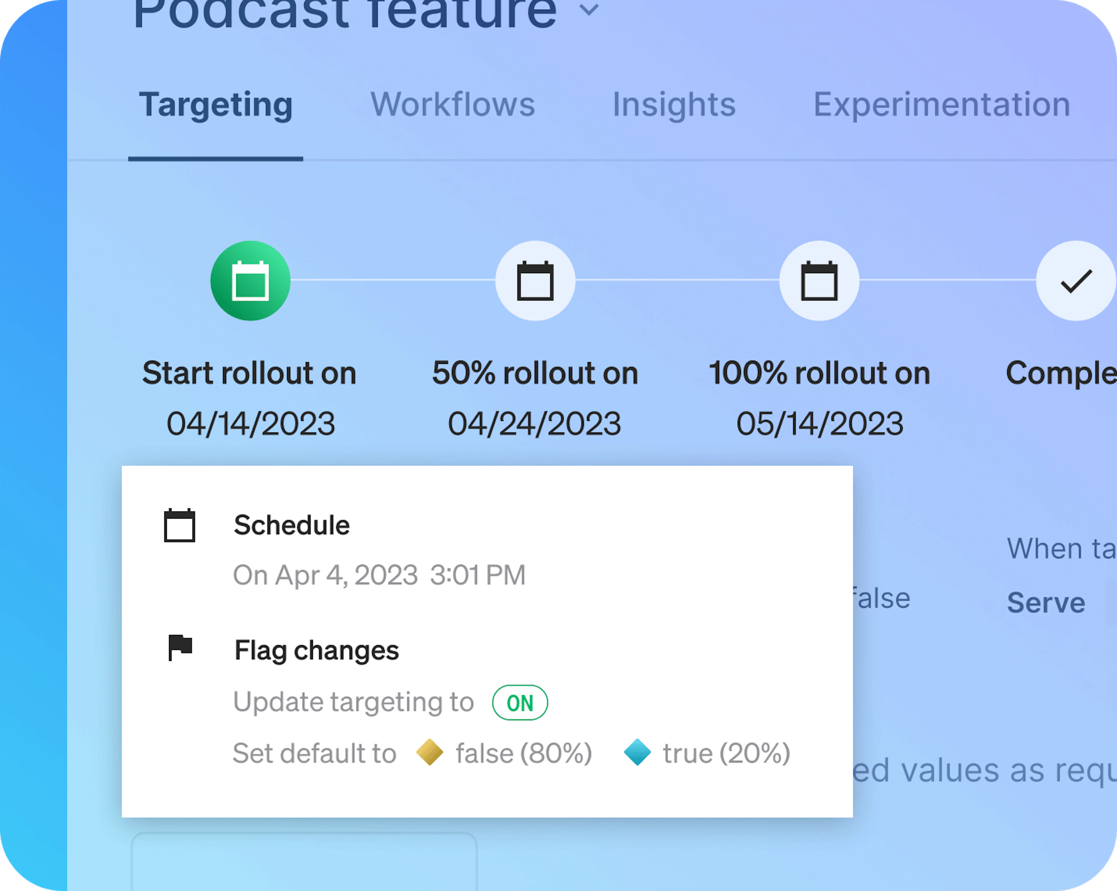 Progressively roll out changes to whomever, whenever with advanced and secure targeting. Manage changes safely using templated workflows and automation.