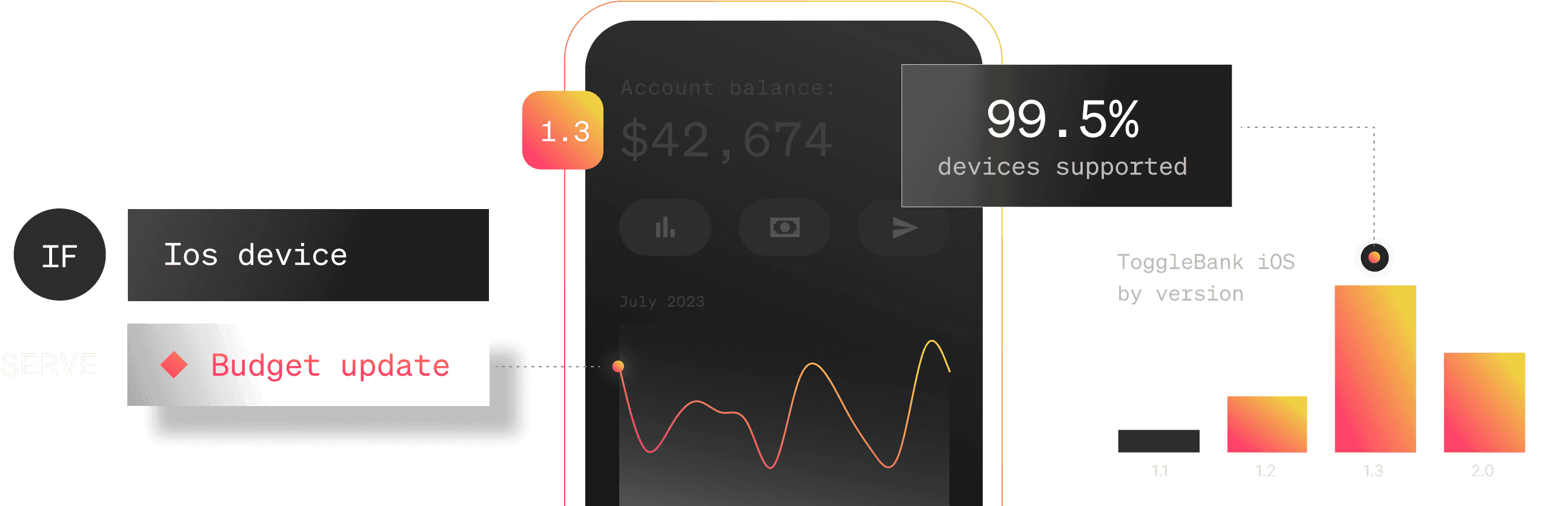 Varied users across versions, devices, and screen sizes make mobile app delivery very complex. With LaunchDarkly, define exactly how apps will be experienced across diverse user bases and measure the impact of new features to improve customer value.