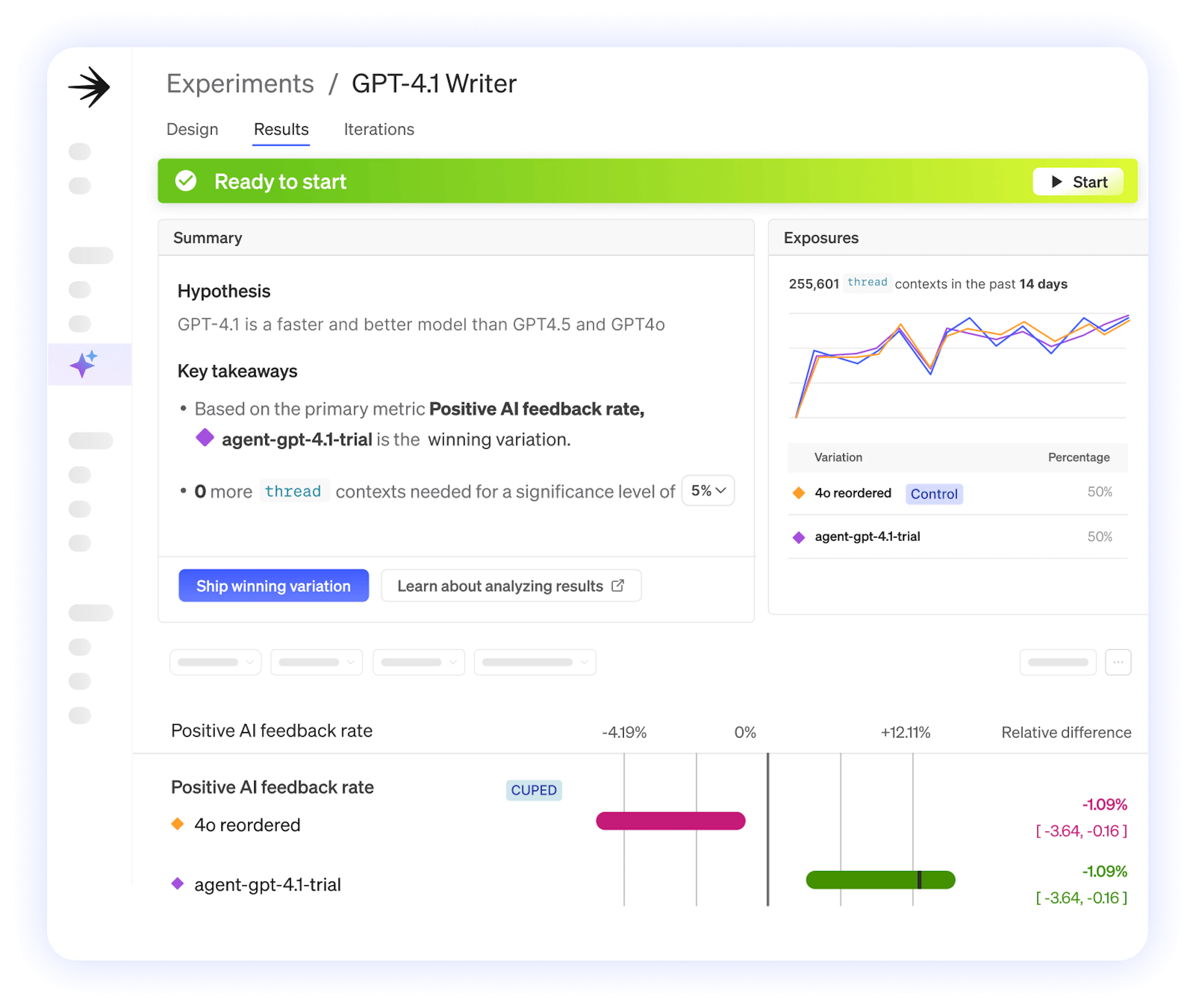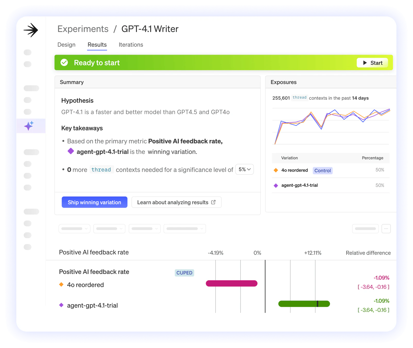 LaunchDarkly lets you test prompts, models, and agents in real traffic. Measure impact and promote the best version without touching code.