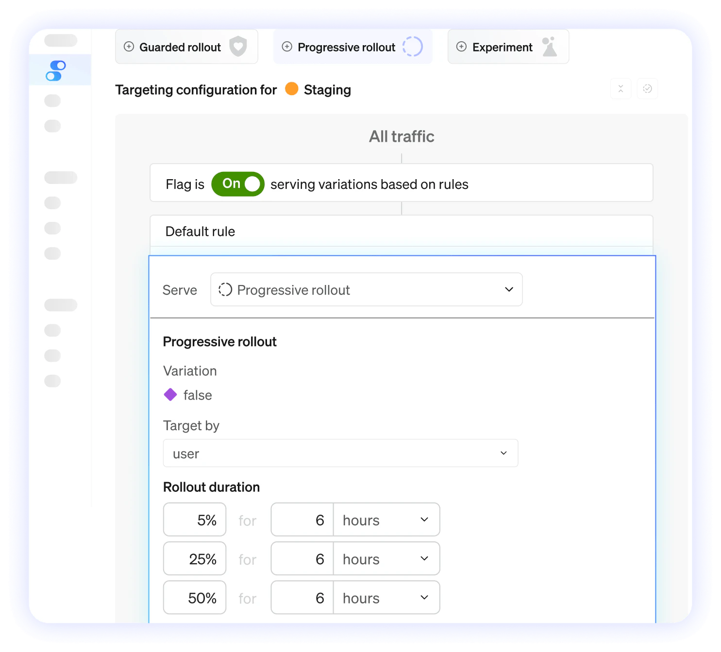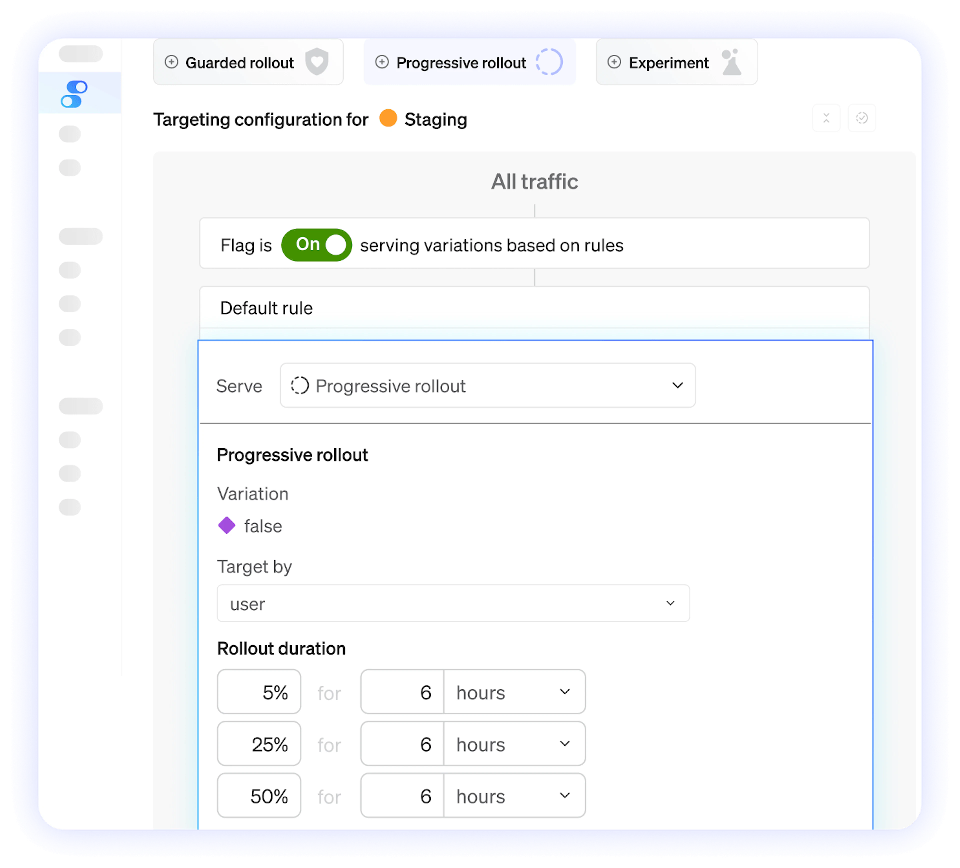 Release changes to 1% of users first. If guardrail metrics breach, LaunchDarkly rolls back automatically—no 2 a.m. wakeup call.