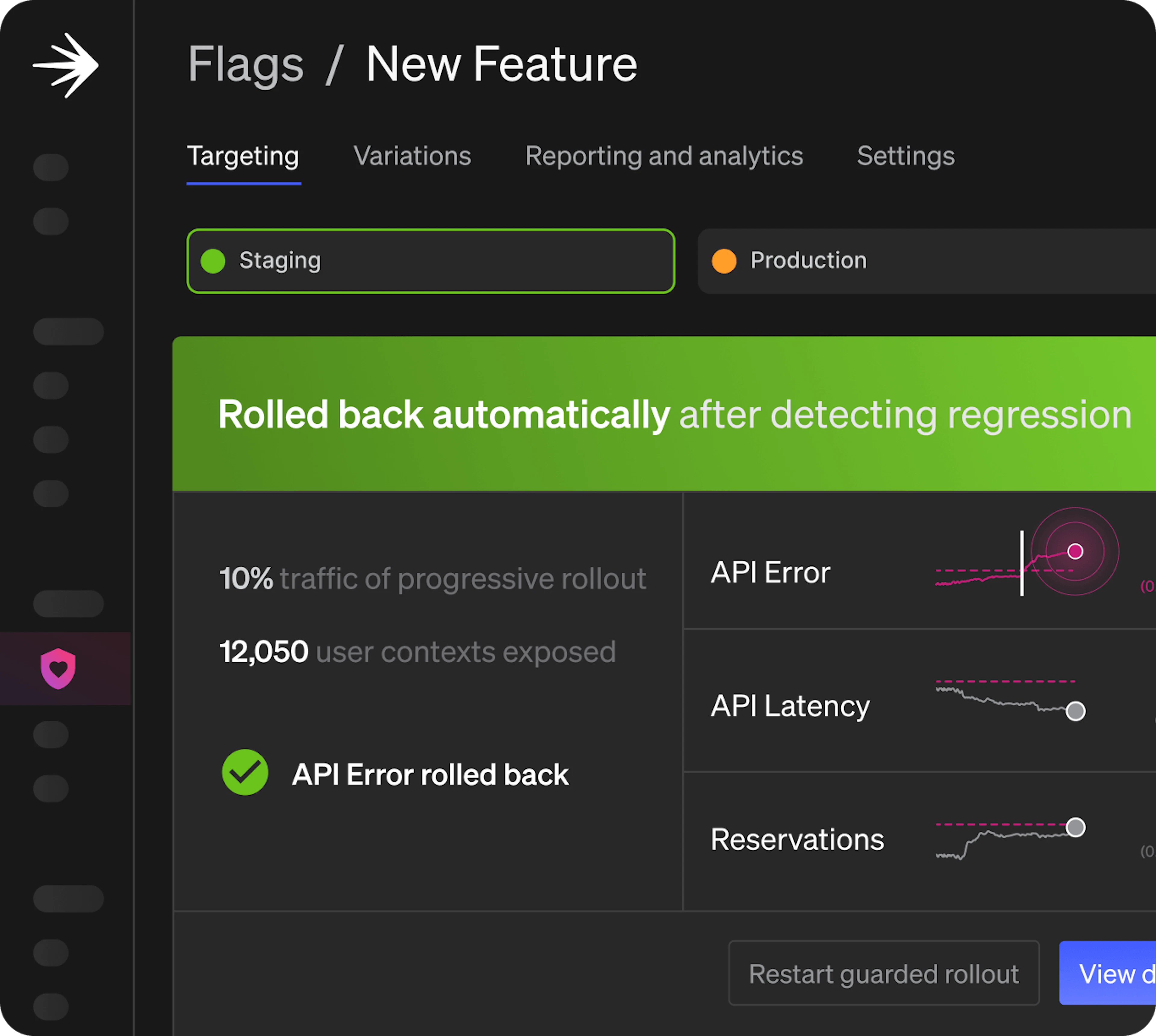 LaunchDarkly enables a self-healing system that detects degraded performance, halts problematic changes, and rolls back unsafe behavior automatically.