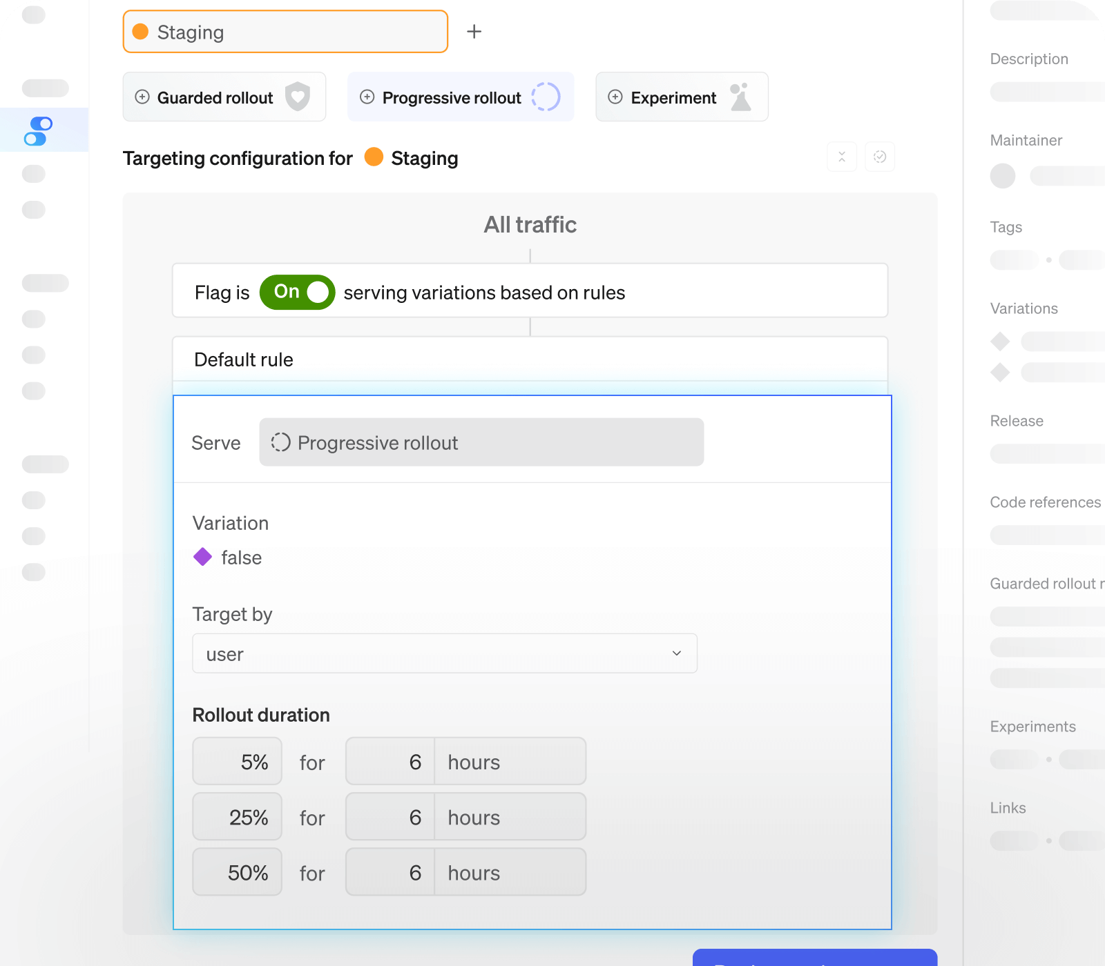 Get alerts and debug faster with session replay, stack traces, and flag-level context.
