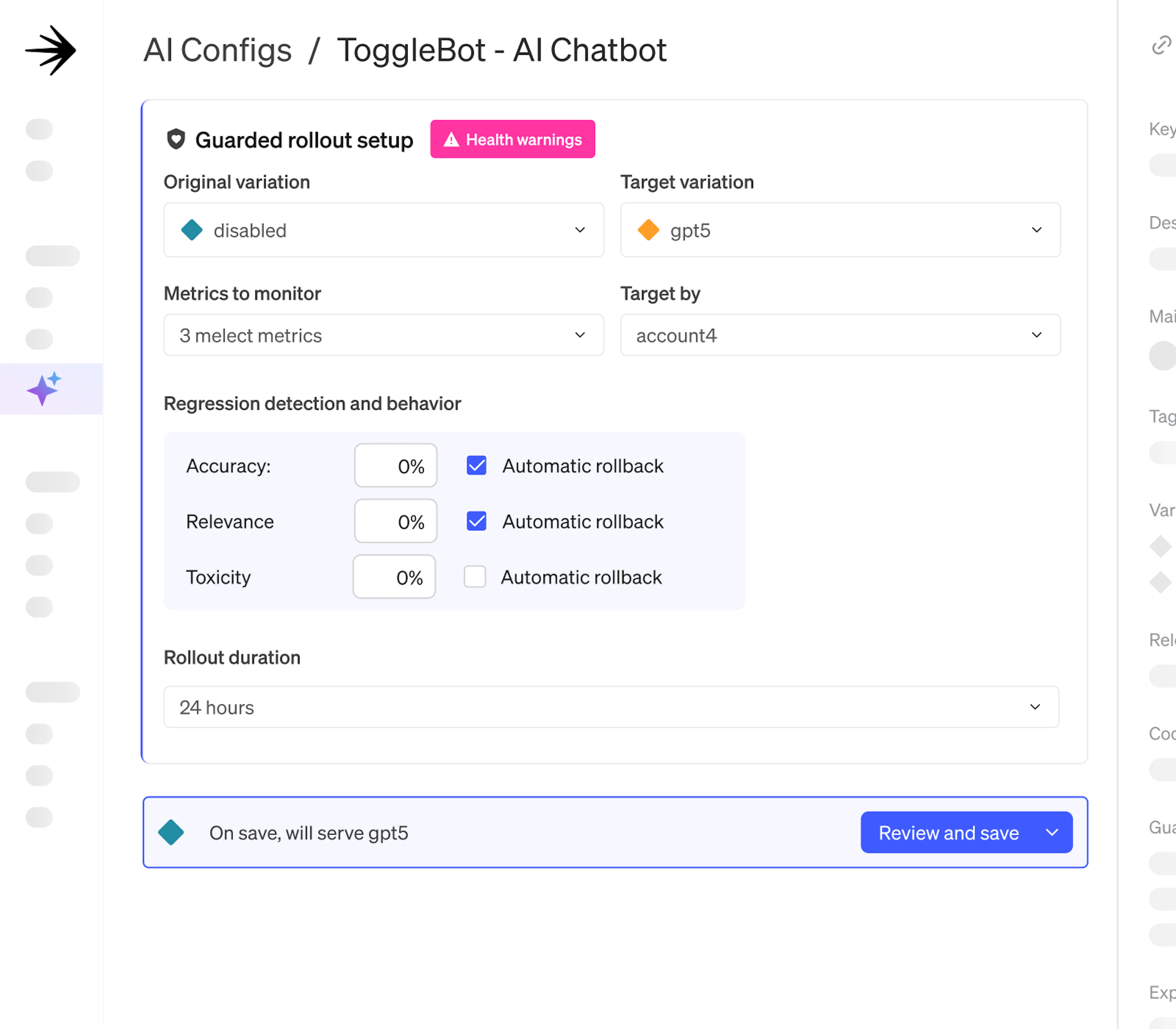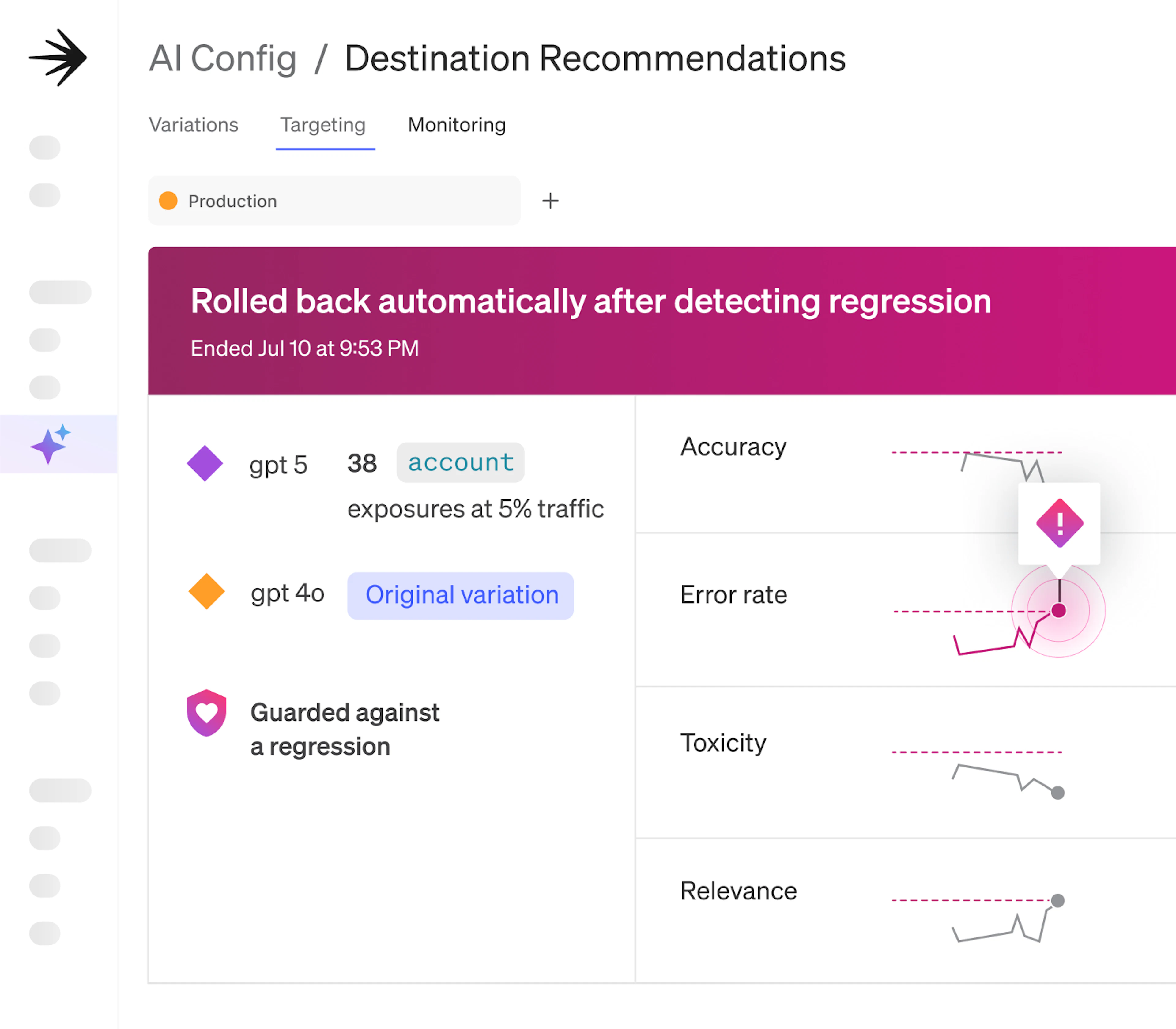 Use targeting rules and guardrails to find the right model or configuration for quality, speed, and cost.