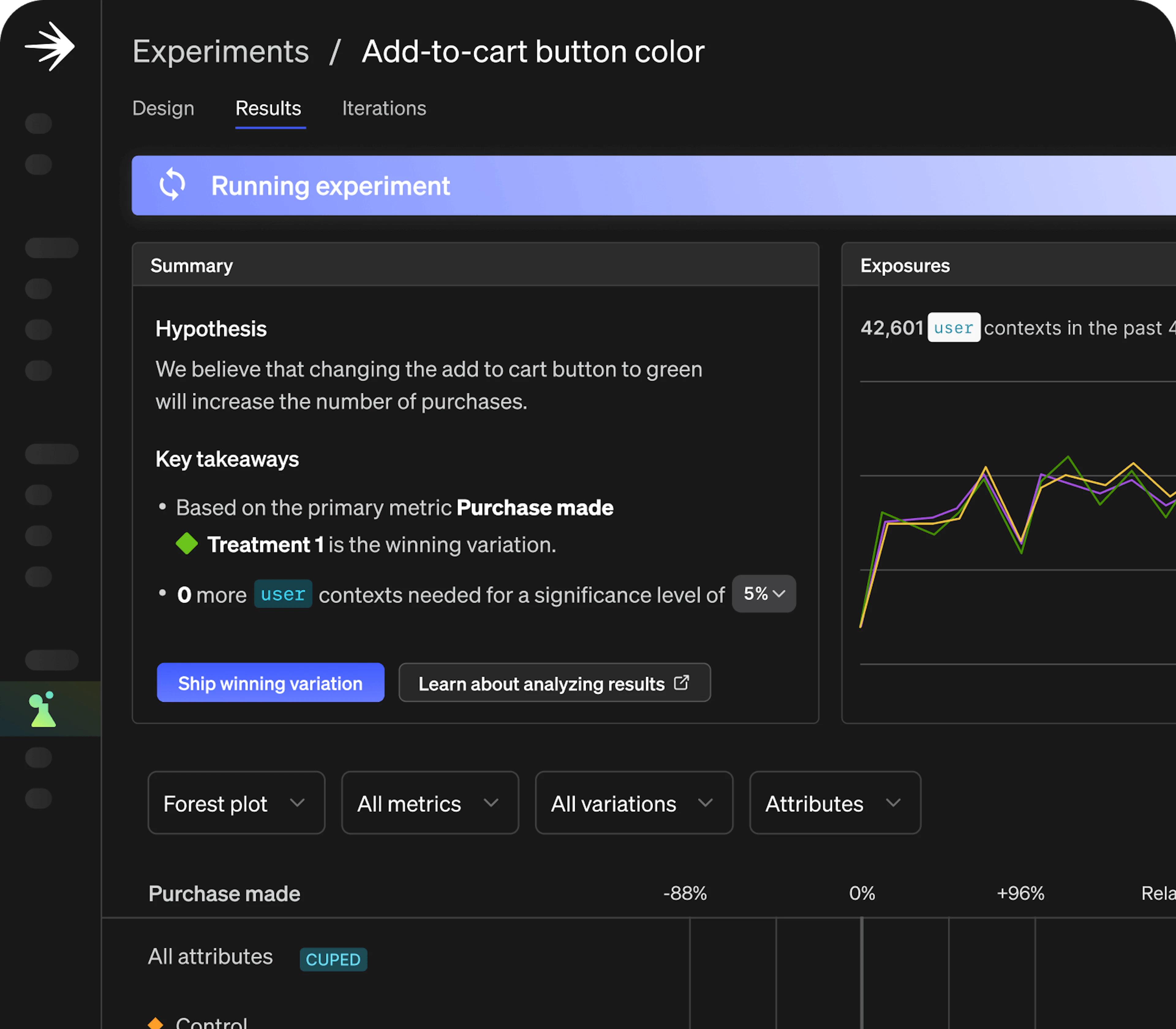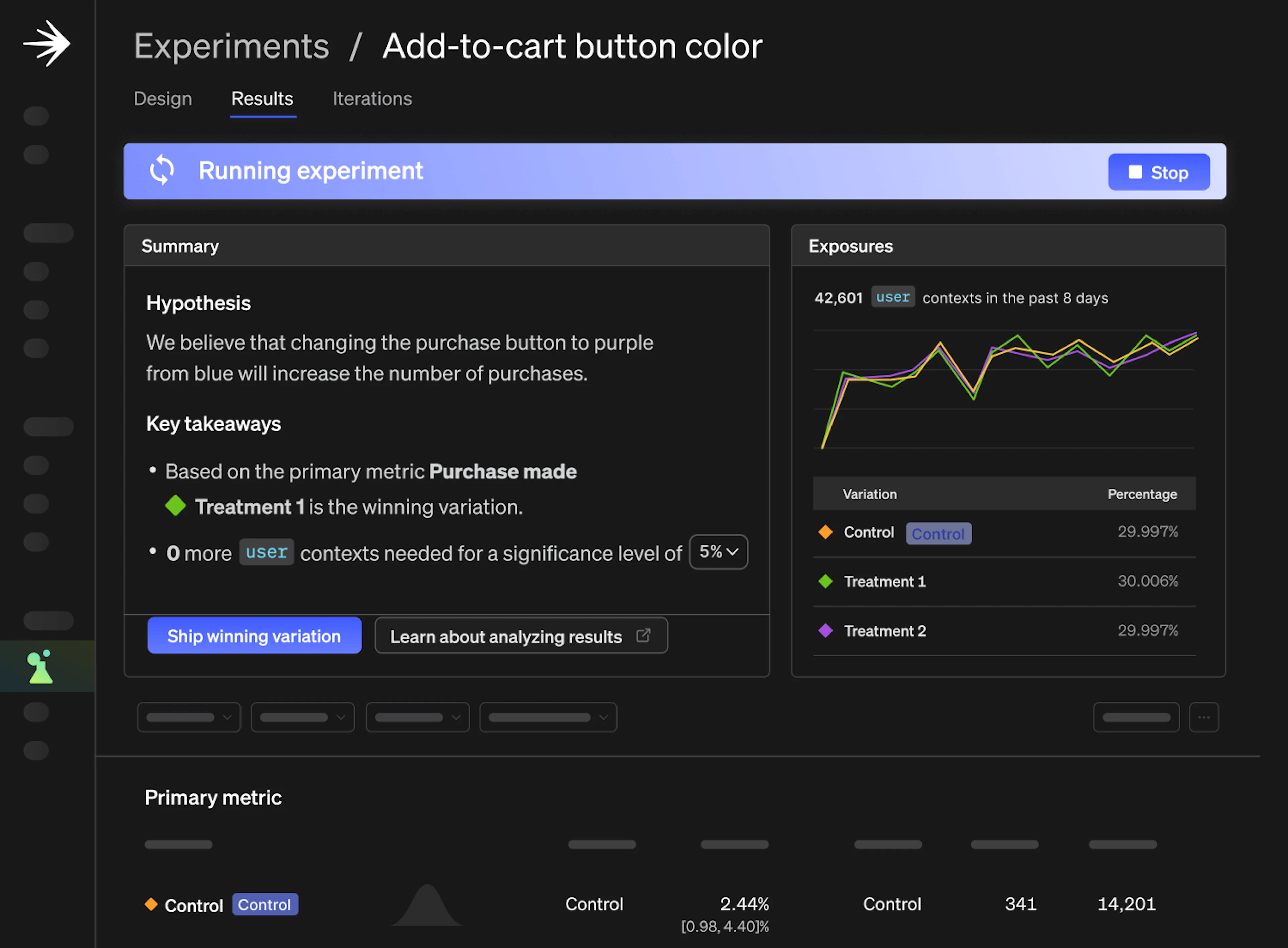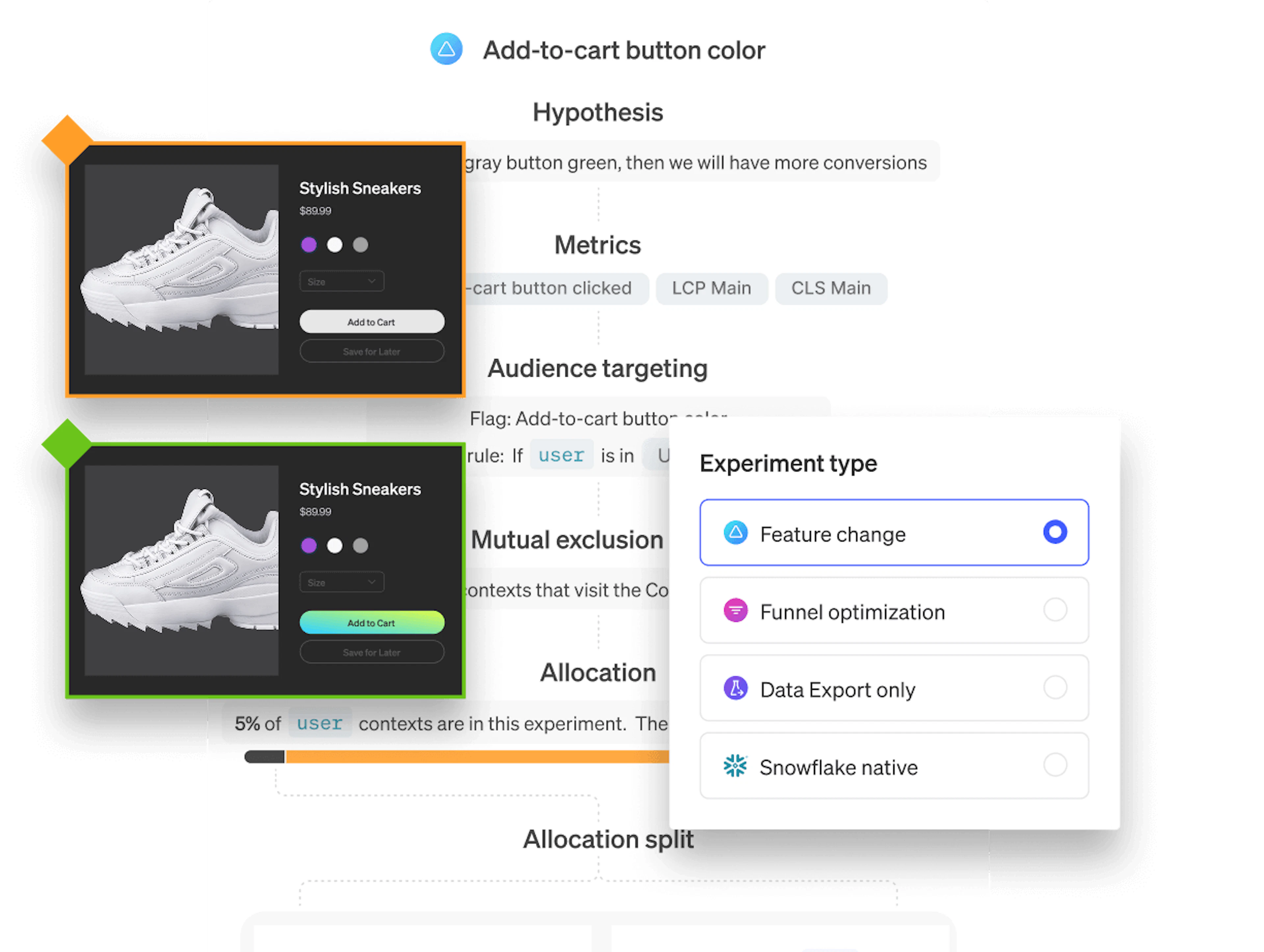 Design and launch any experiment, from page layouts to AI-powered features, with the control, flexibility, and statistical rigor required.
