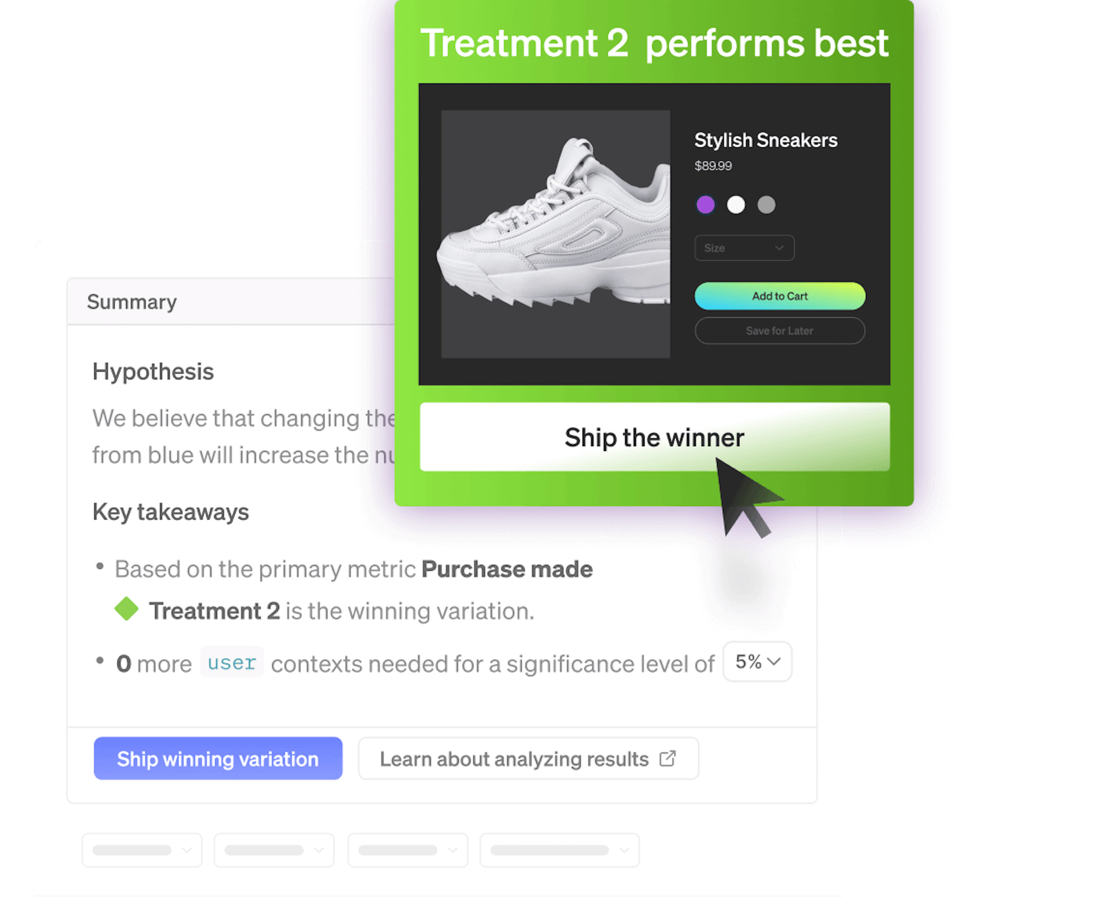 Make data-informed decisions. Ship winners with one click, or remix your test in real time.