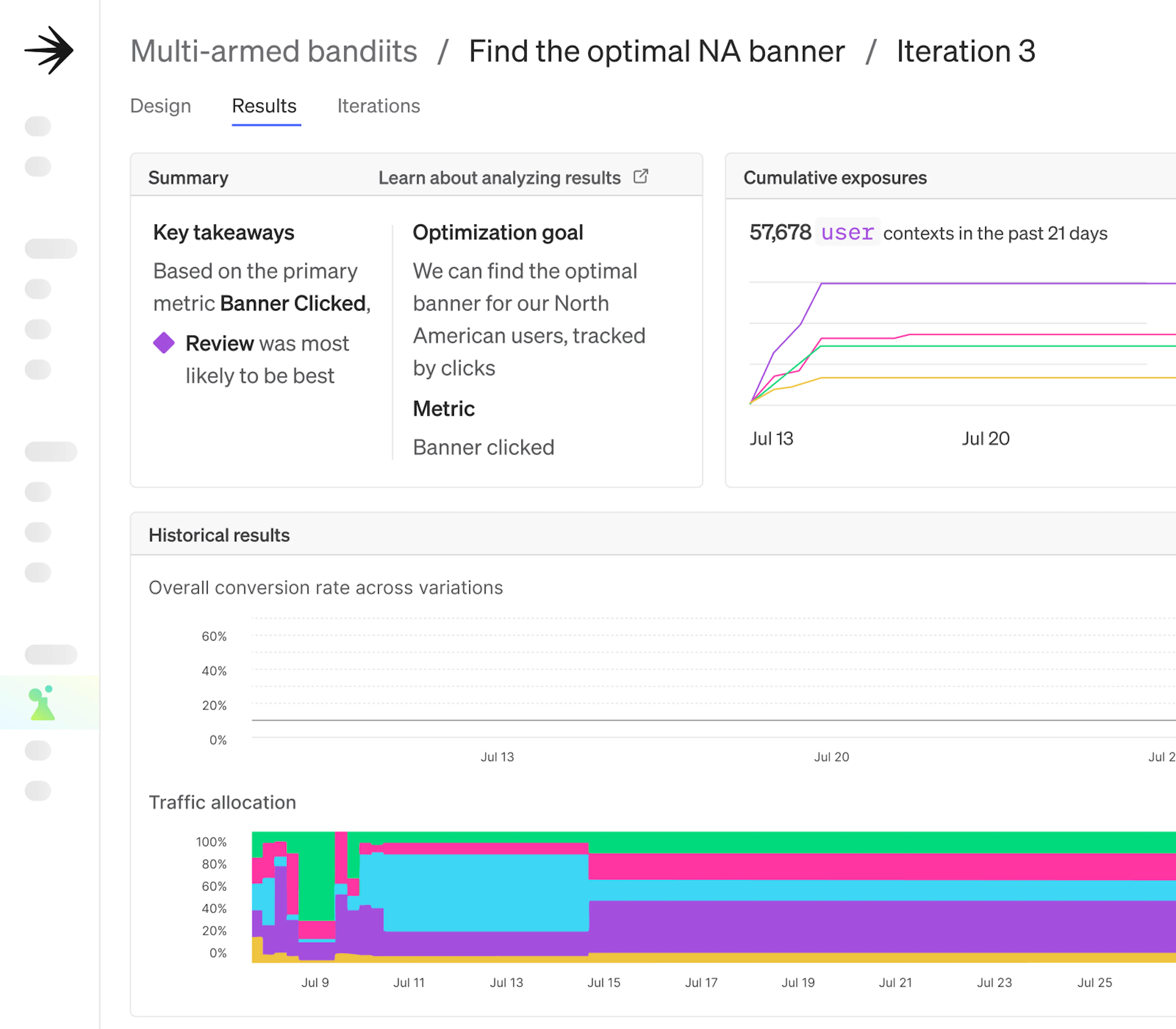 Spot trends early and shift traffic to winning variations with multi-armed bandit experiments.