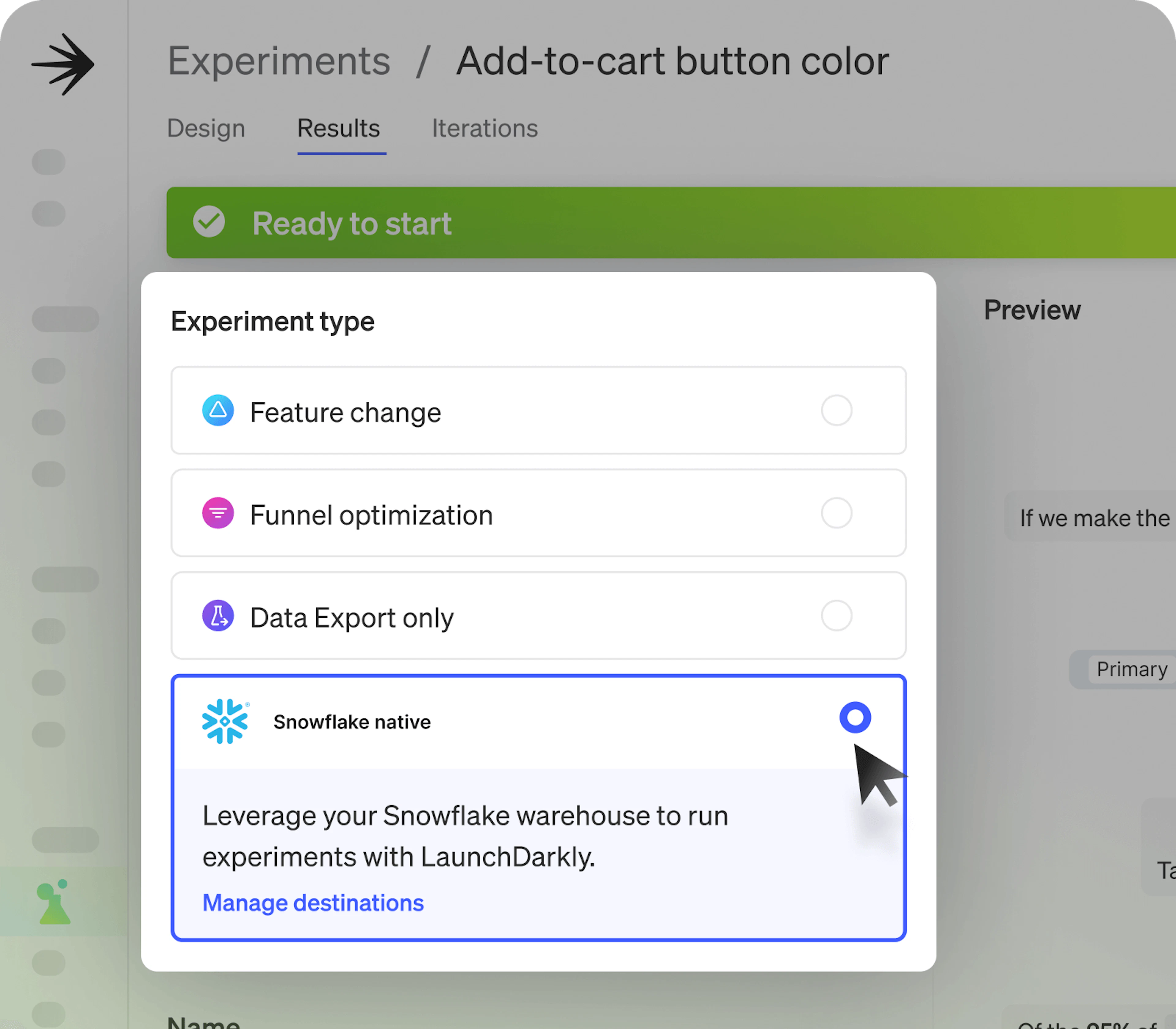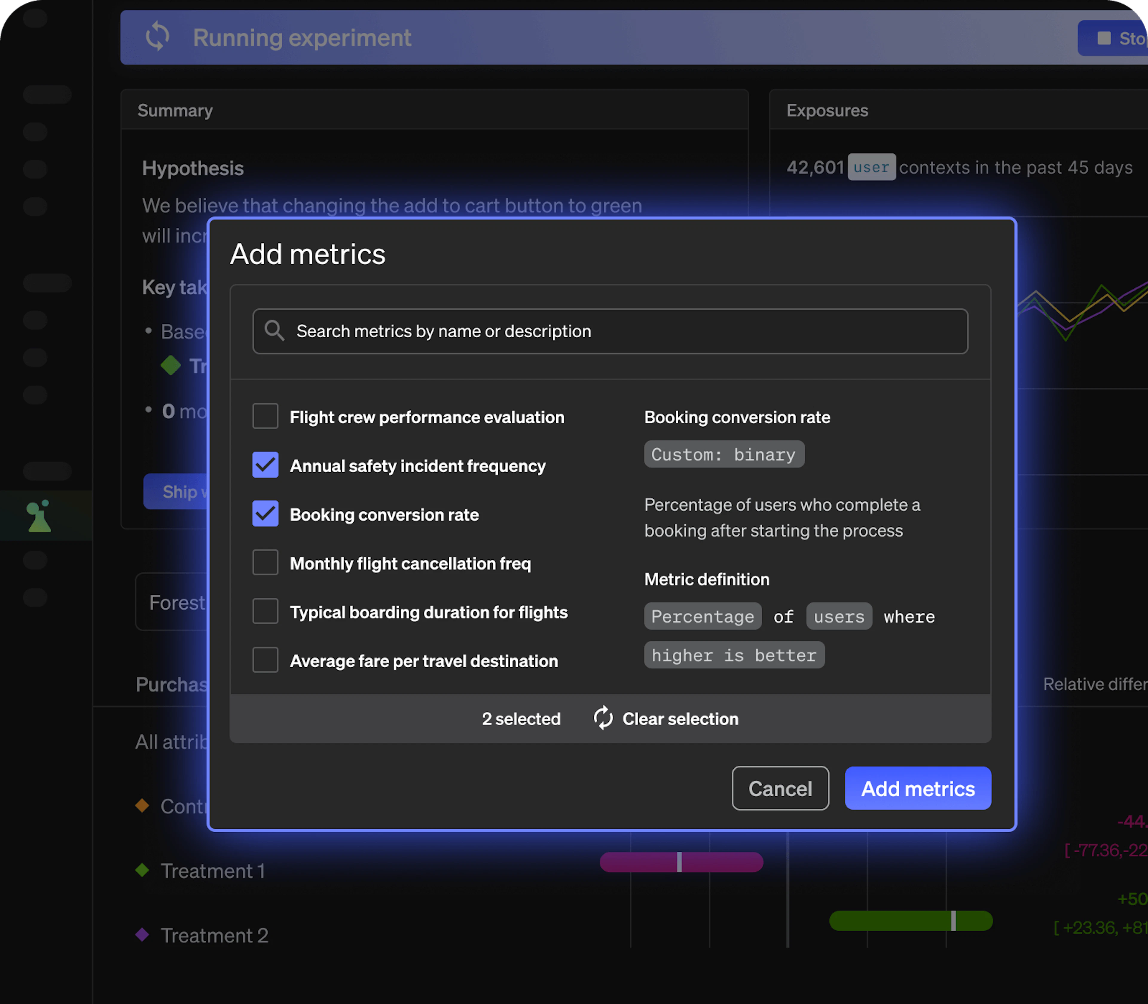 Run LaunchDarkly experiments on top of your existing data and measure against trusted metrics.