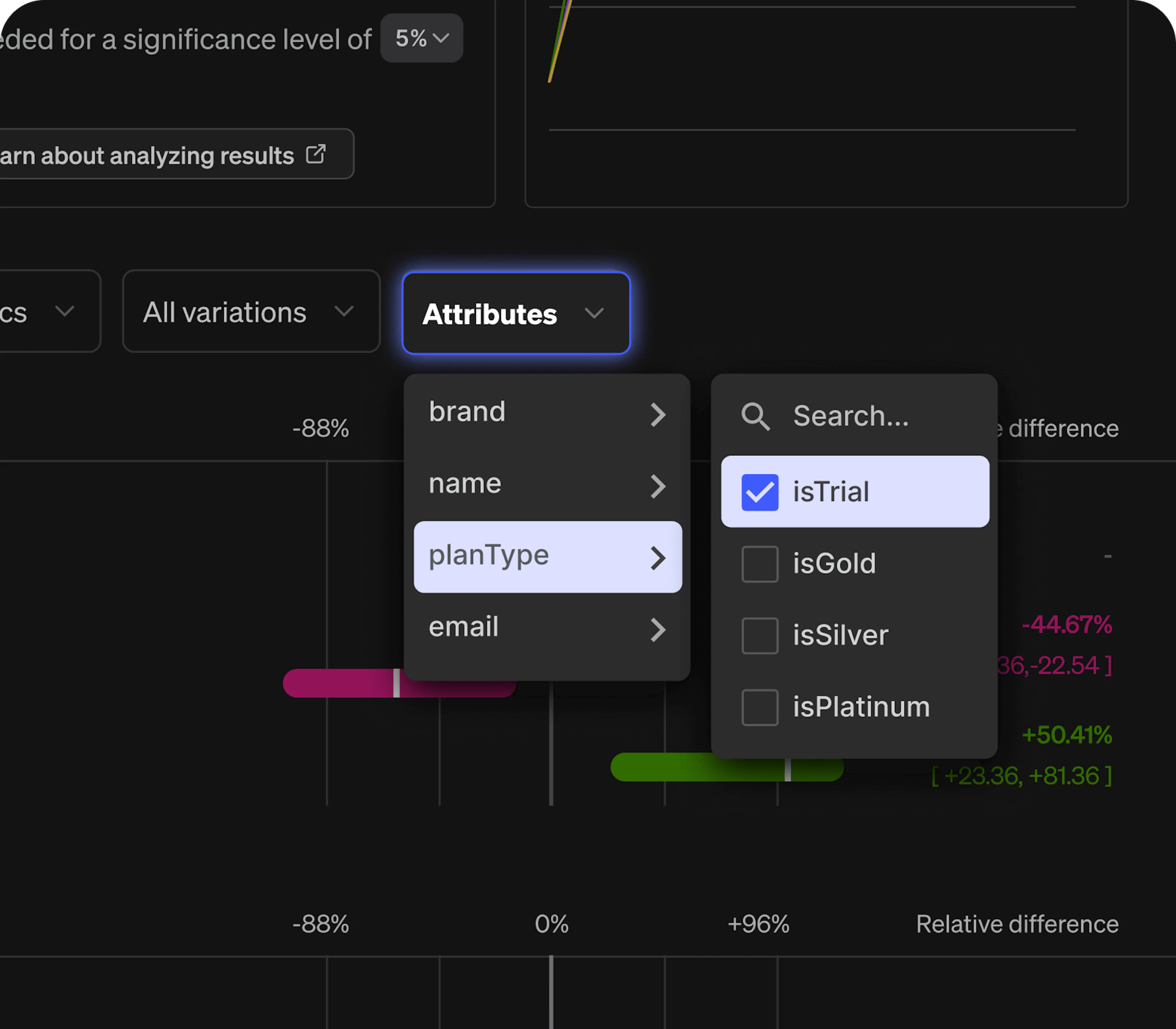 Leverage your organization’s trusted metrics to measure experiments against your team's KPIs.