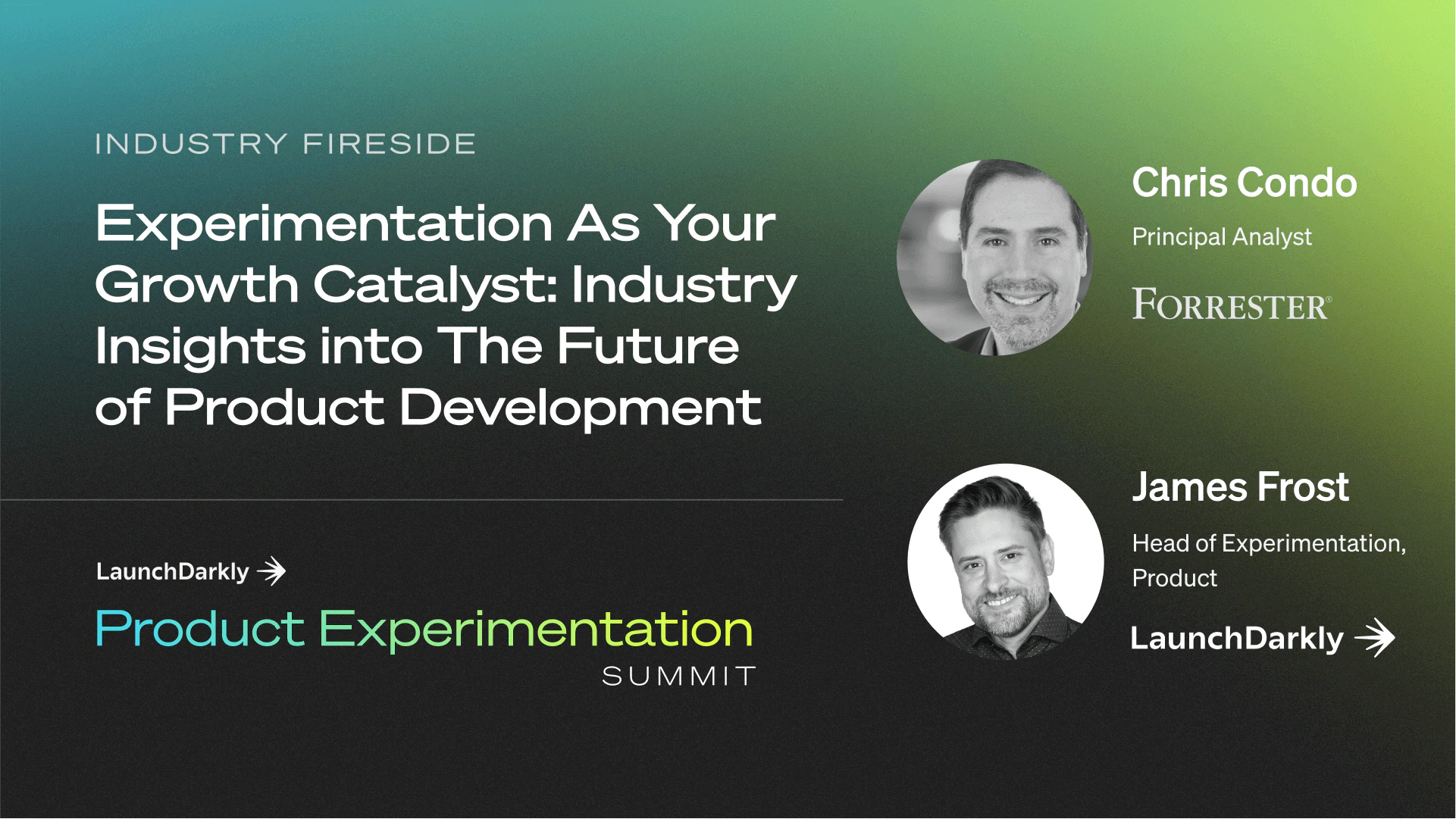 Elite software organizations continuously experiment and improve the business, but that potential is out of reach for most organizations who struggle with siloed tooling, complex processes, and long, unreliable experiment cycles. Join James Frost, Head of Experimentation at LaunchDarkly, along with Chris Condo, Principal Analyst at Forrester, for a discussion about what they’re seeing in the market and how to approach product experimentation for the next generation of software delivery.