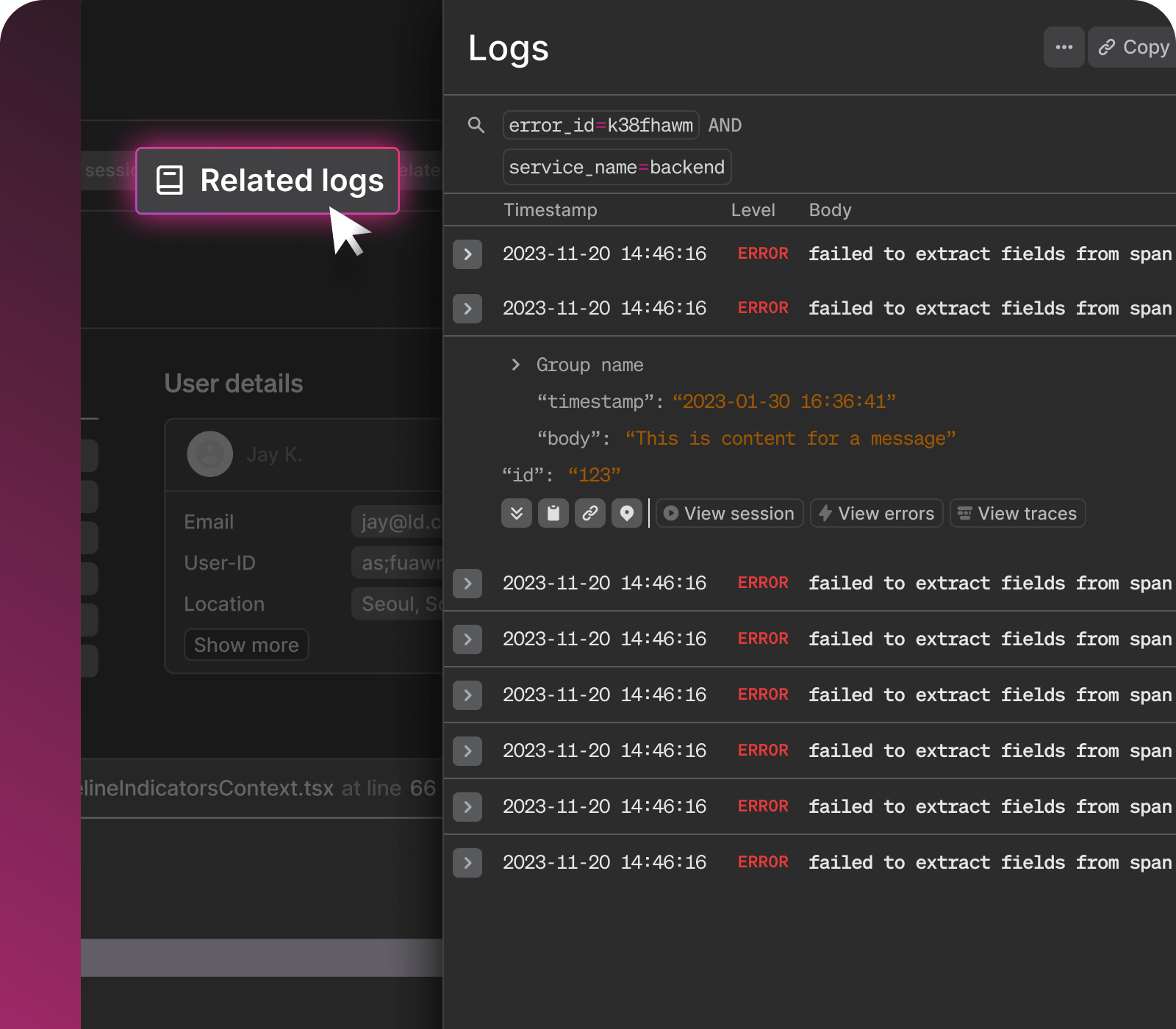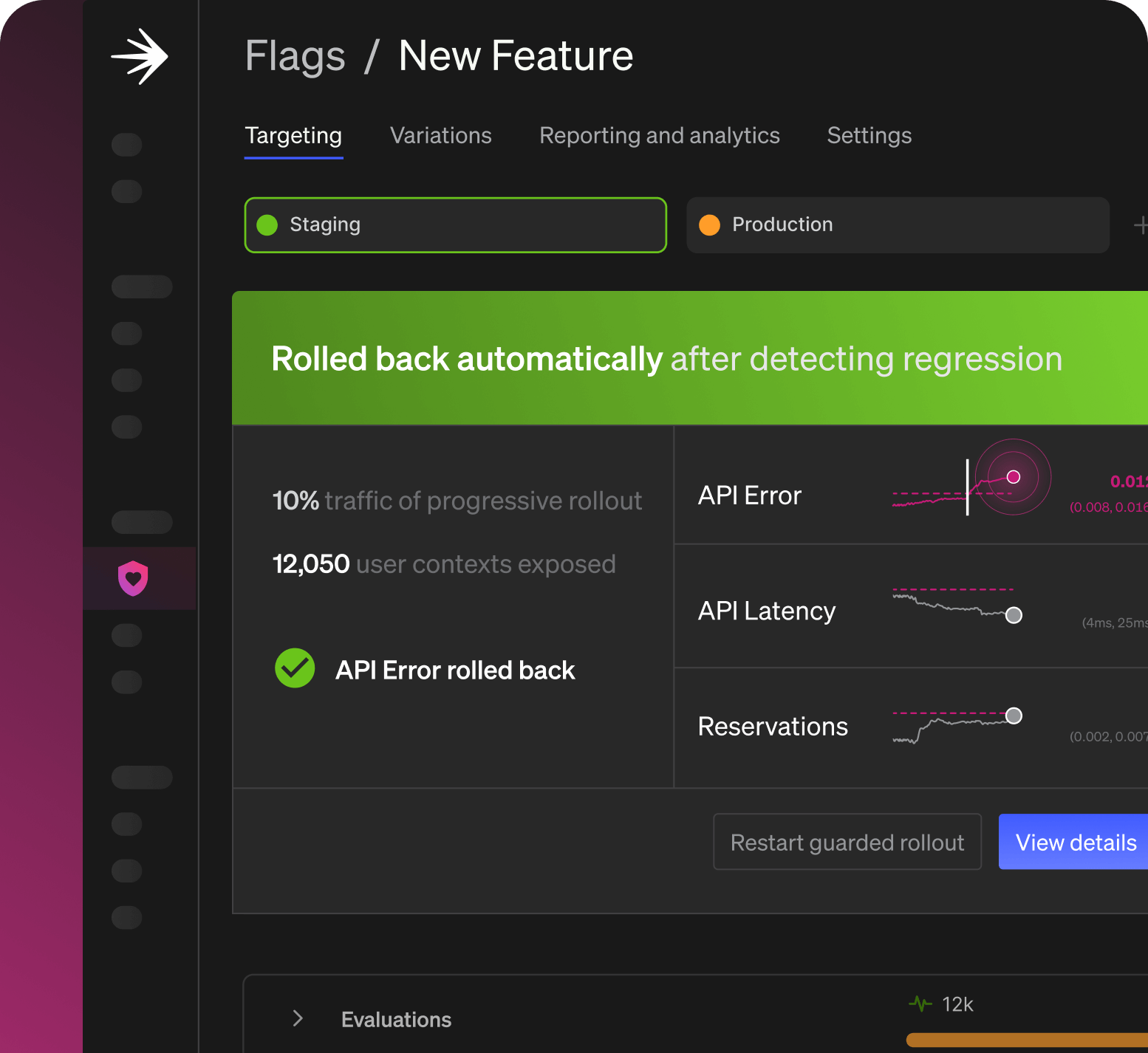 Get alerts and debug faster with session replay, stack traces, and flag-level context.