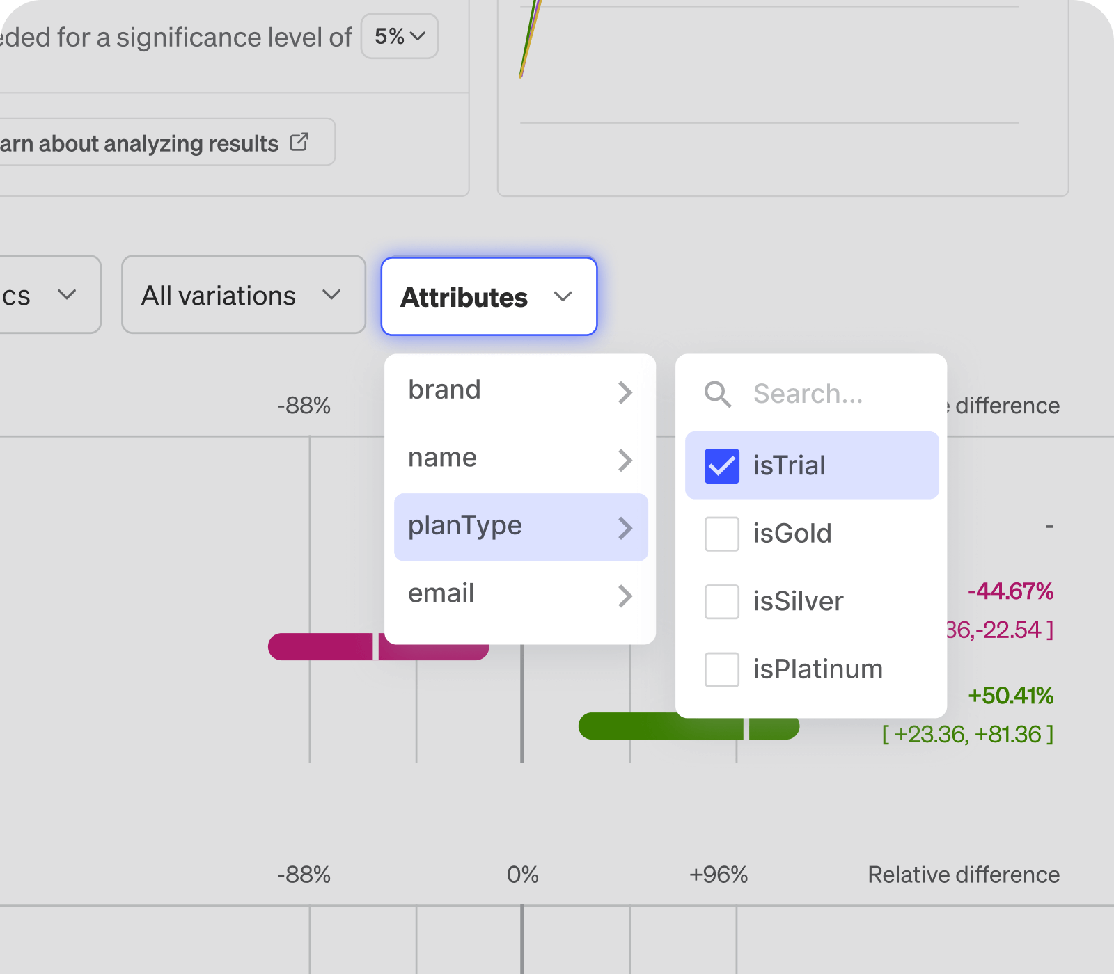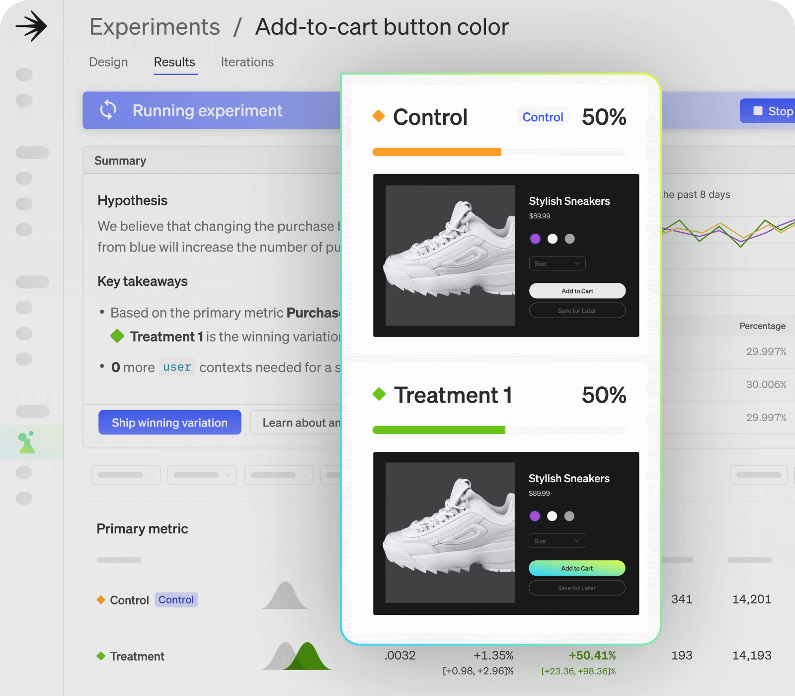 Ship the winning variation when statistical significance is reached, no redeploy required.